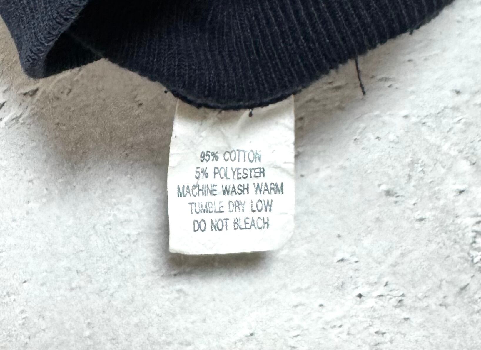 ボディのタグは取れかけており、裾リブに傷や全体的な色褪せなど、着用感が見られます。古いアイテムとしてご理解いただける方におすすめです。詳細は写真をご確認ください。
