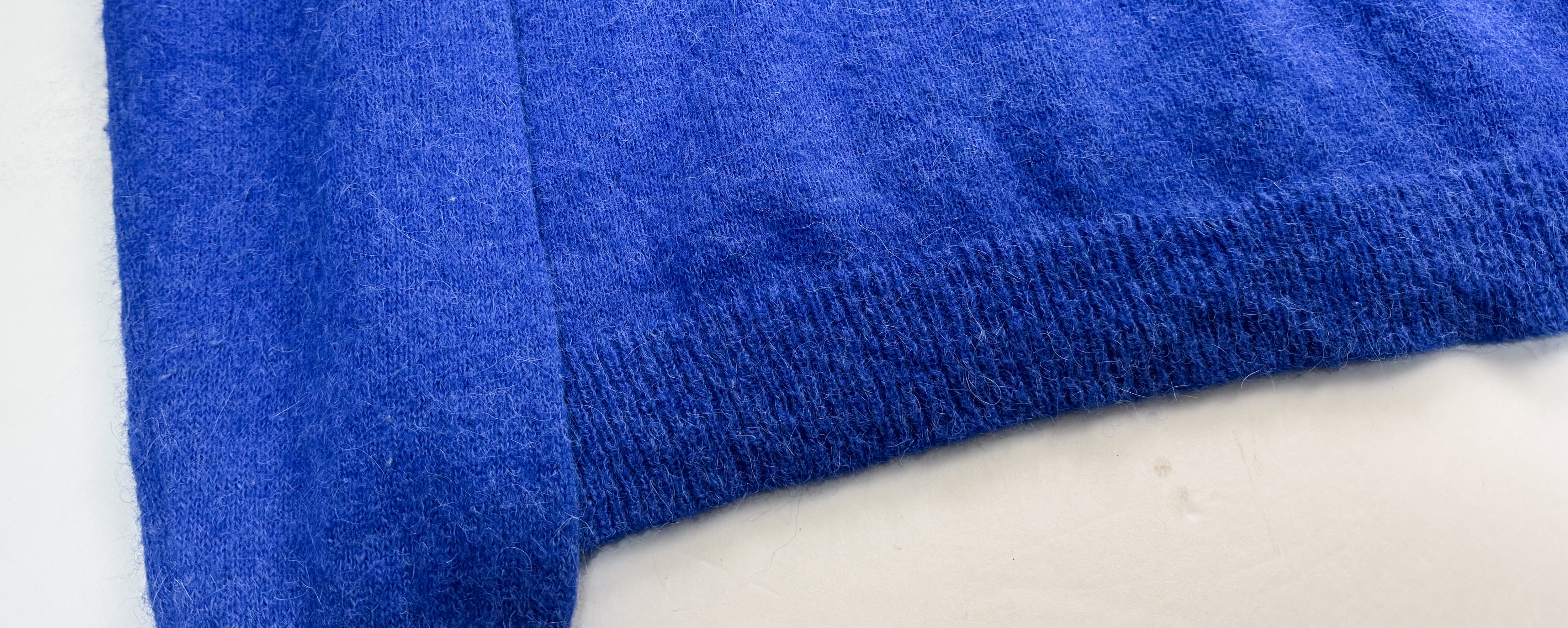 テックやミリタリーのイメージが強いC.P.ですが、こちらはロゴの主張を抑えた静かな存在感が魅力。大人のワードローブにすっと馴染む、そんなニットです。袖は元々ロールされるように縫い付けられた仕様です。