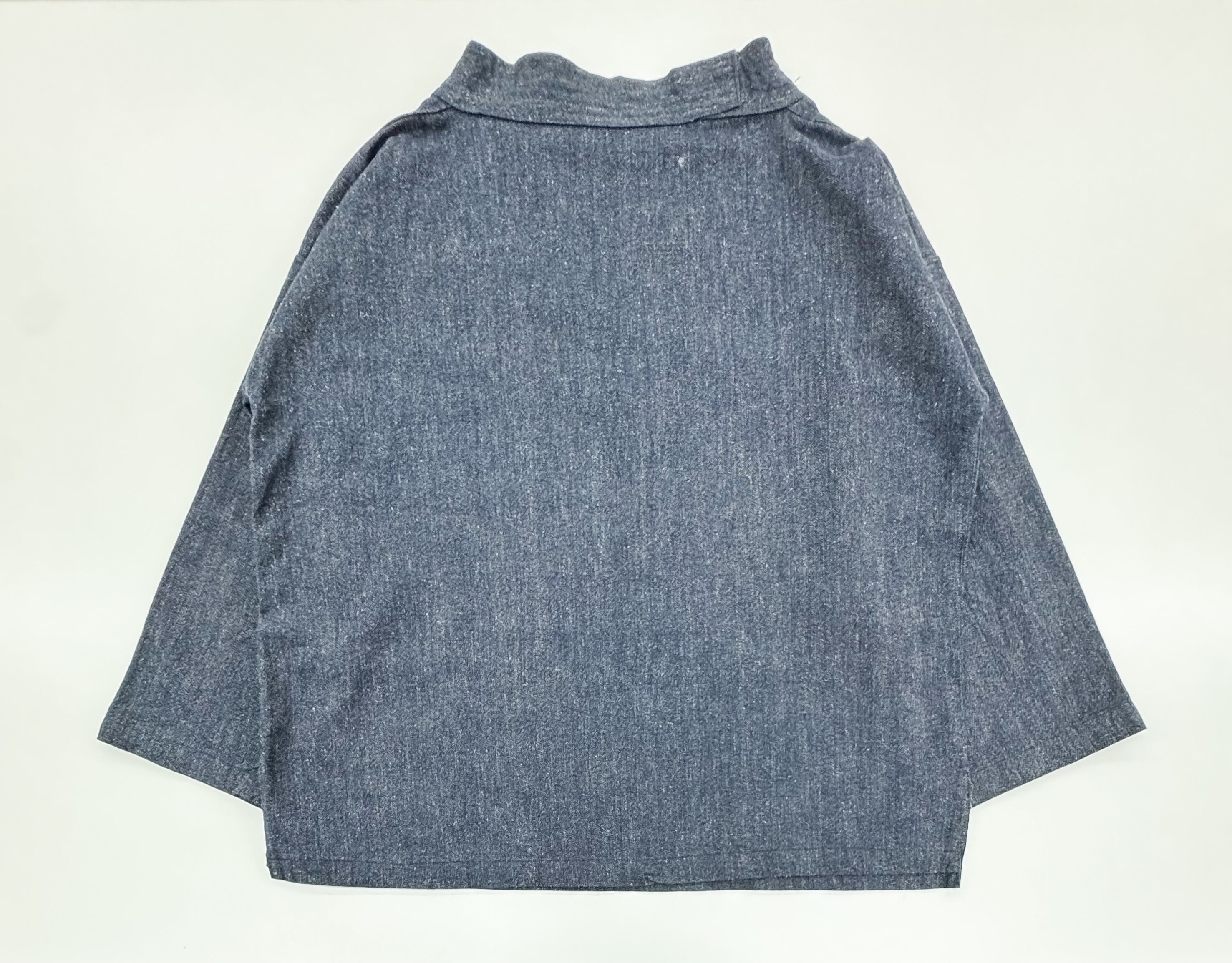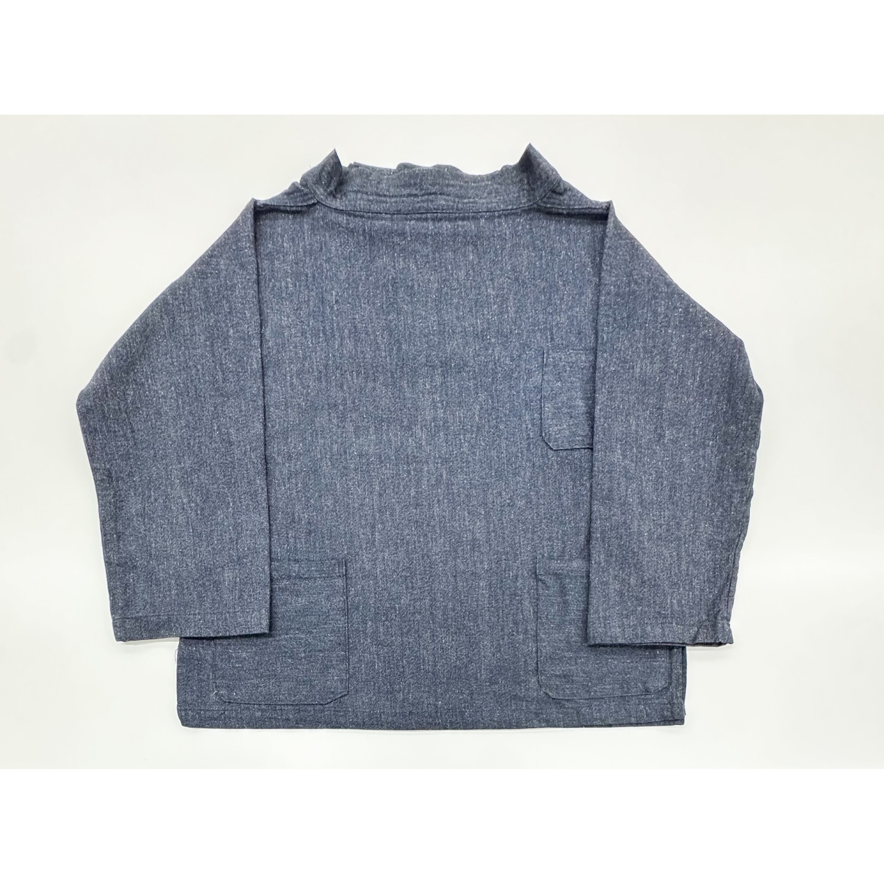 風合い豊かなネップを含んだデニム素材を使用した、クラシカルな雰囲気漂うフィッシャーマンスモック。シンプルながらも機能性を備えたディテールから、ワークウェアとしての実用性を感じさせる一着です。