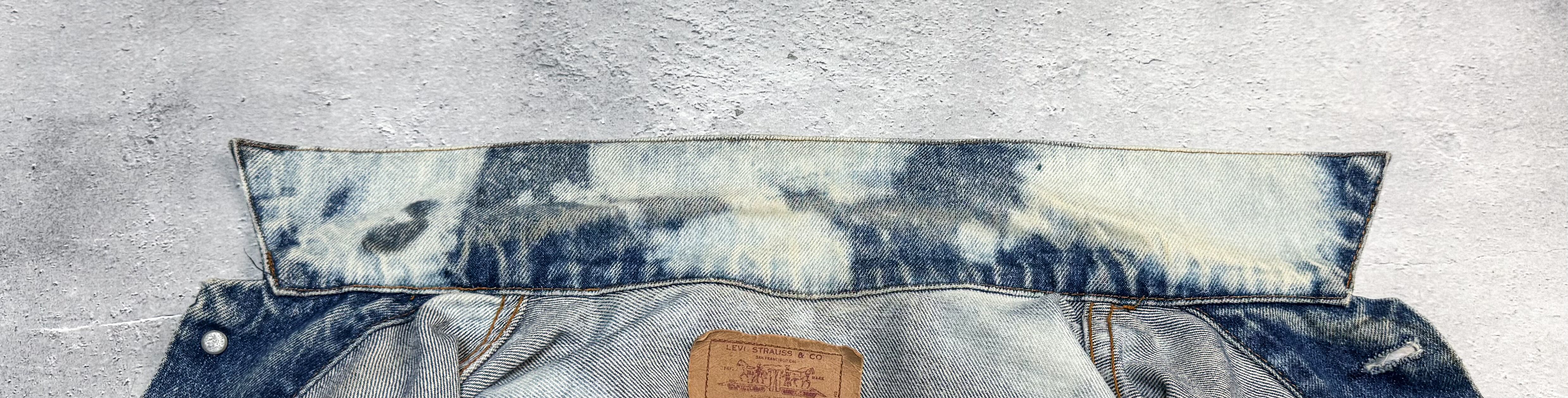 フロント・バックともに濃淡のコントラストが強く、1点物としての存在感を放ちます。昨今、ヴィンテージシーンにとどまらず急速に注目を集めるデニムジャケット。他と被りたくない、そんな方にこそ手に取ってほしい一着です。