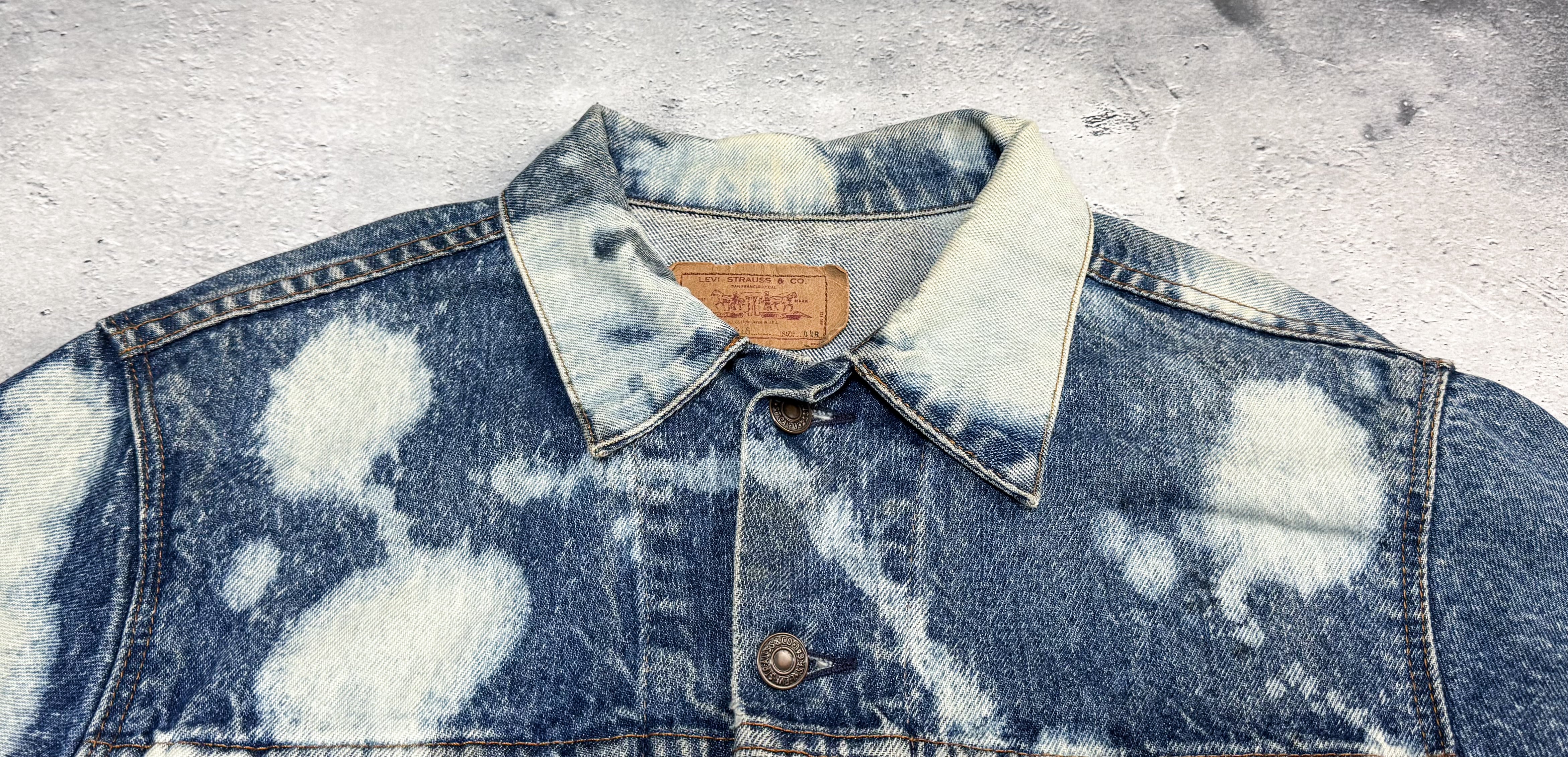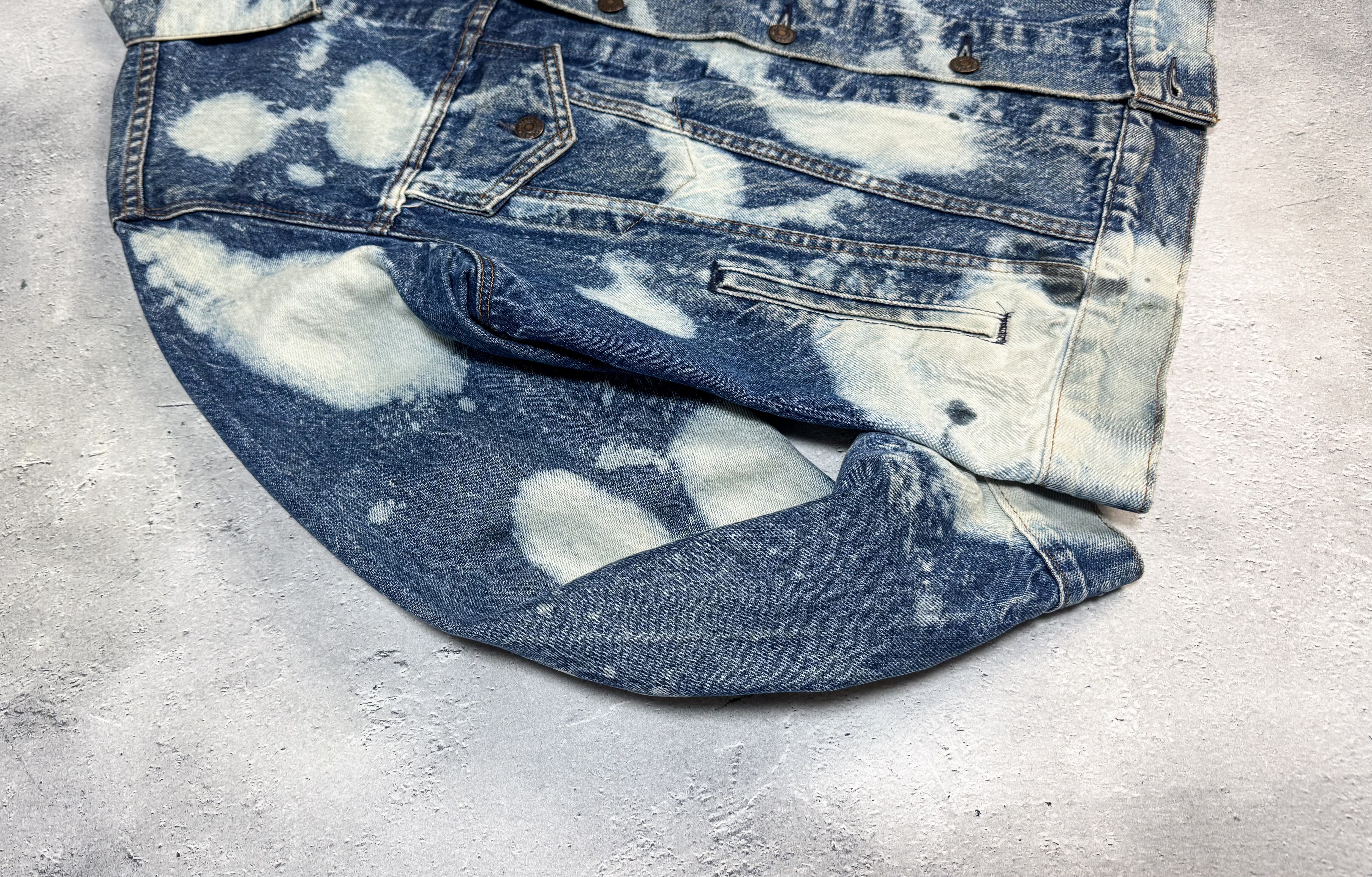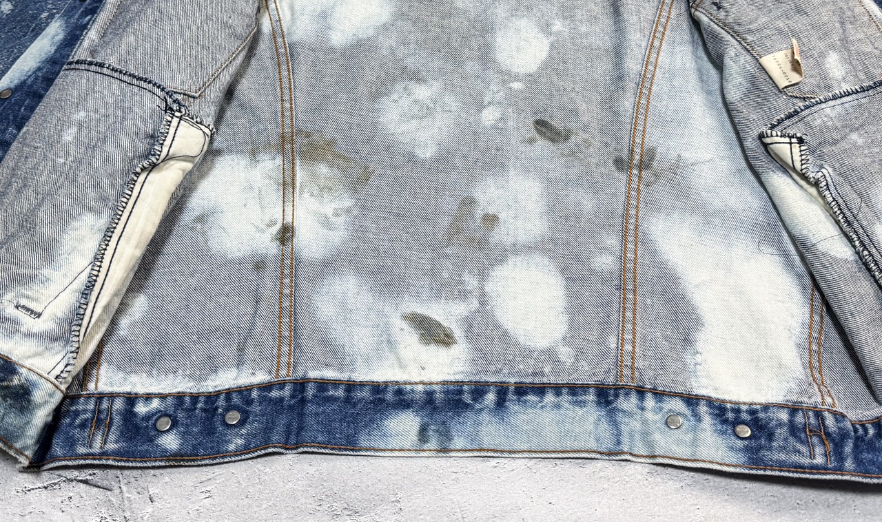 70506をベースに、全面に大胆なブリーチ加工が施されたインパクト抜群の一着。まるでメゾンブランドのアートピースを彷彿とさせるような、ランダムかつ絶妙なブリーチのバランスが魅力です。