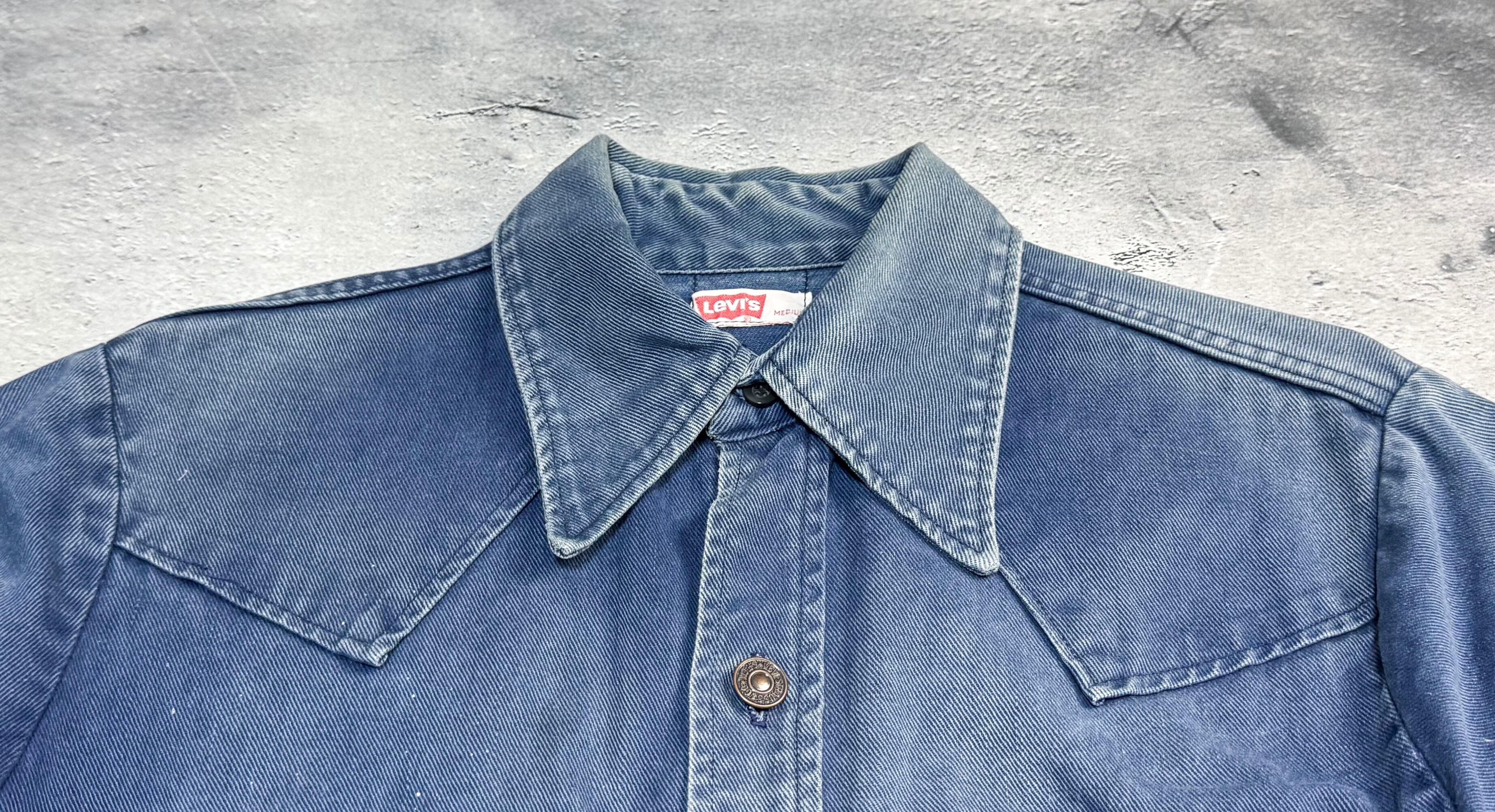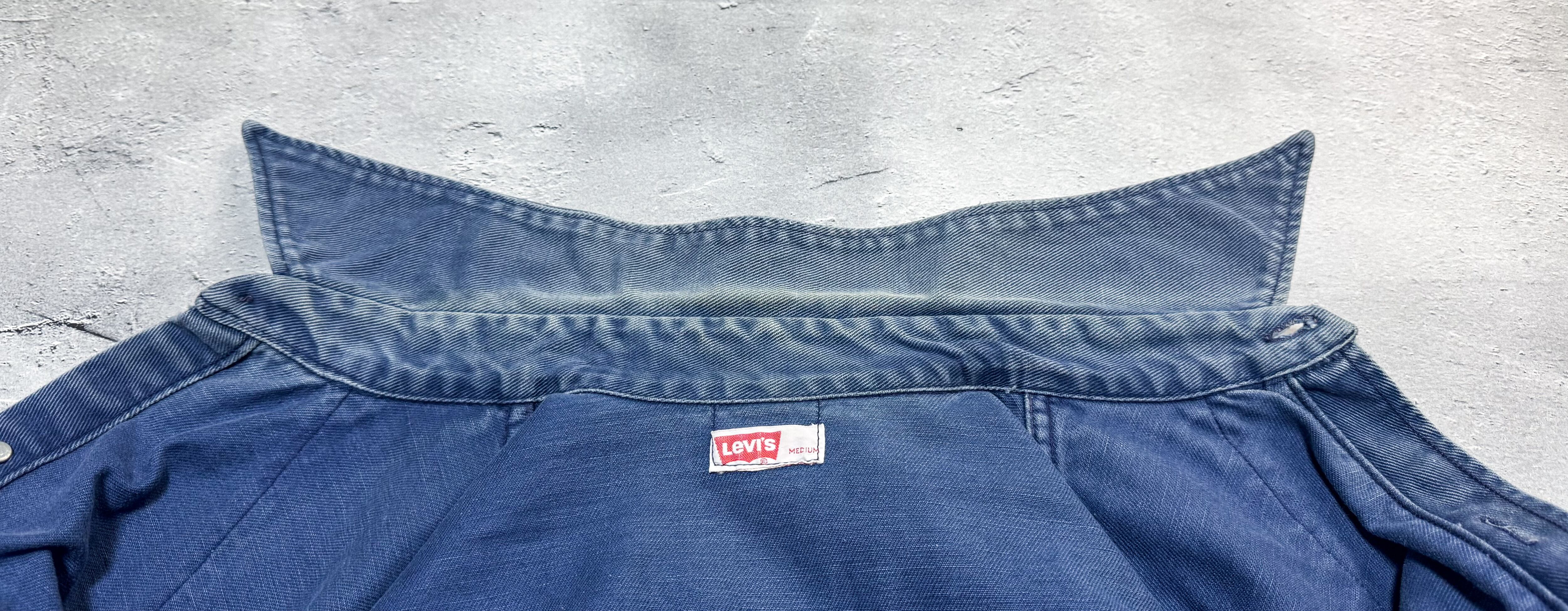 大胆なヨーク切り替えにワイドな襟が映える、当時らしいウエスタンディテール。