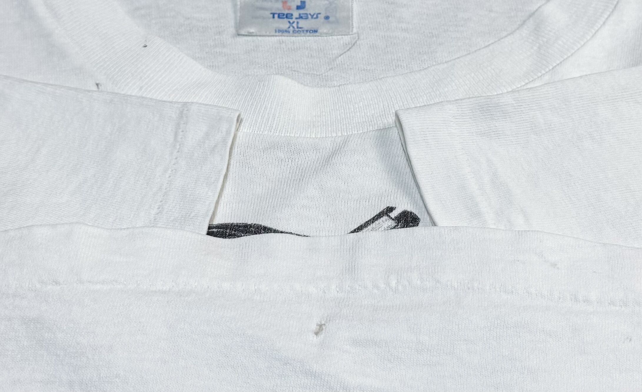 ボディはUSA製「SOF TEE」ボディを使用。コットン100%、丸胴仕様、XLサイズと文句なしのディテール。袖、裾ともにシングルステッチになります。