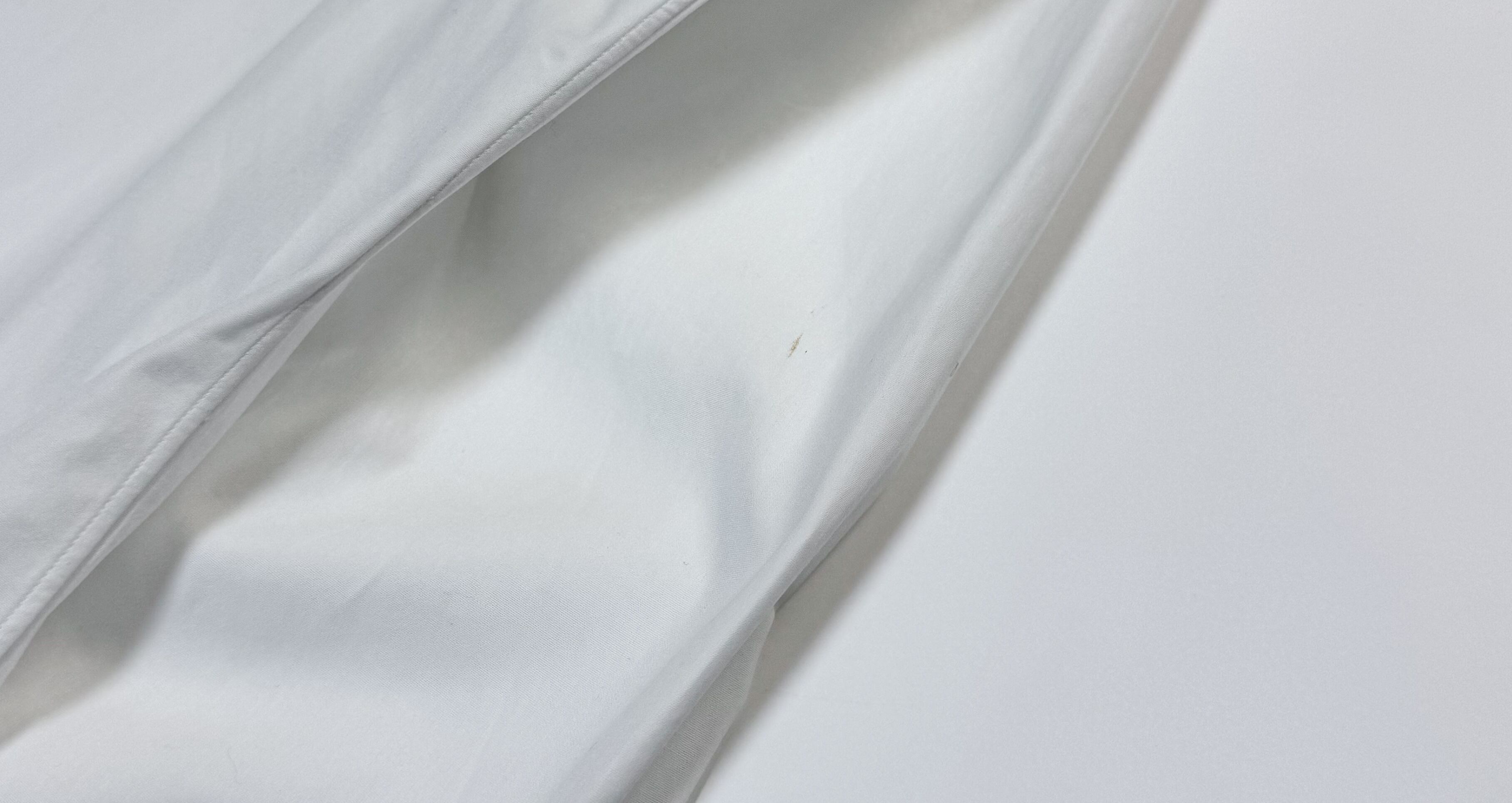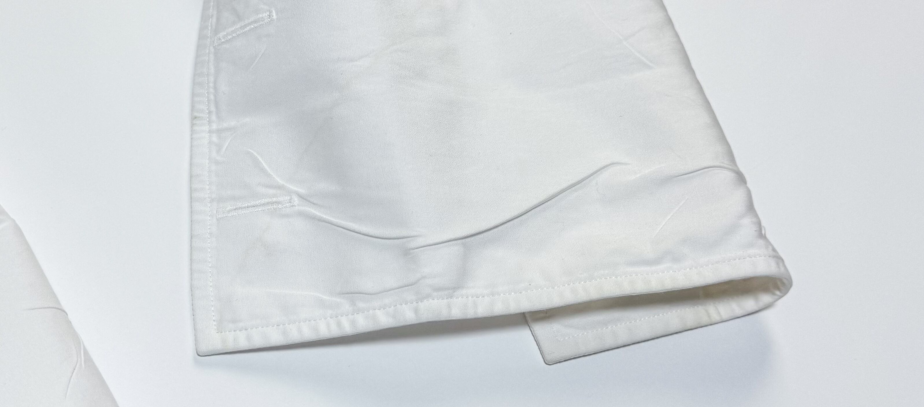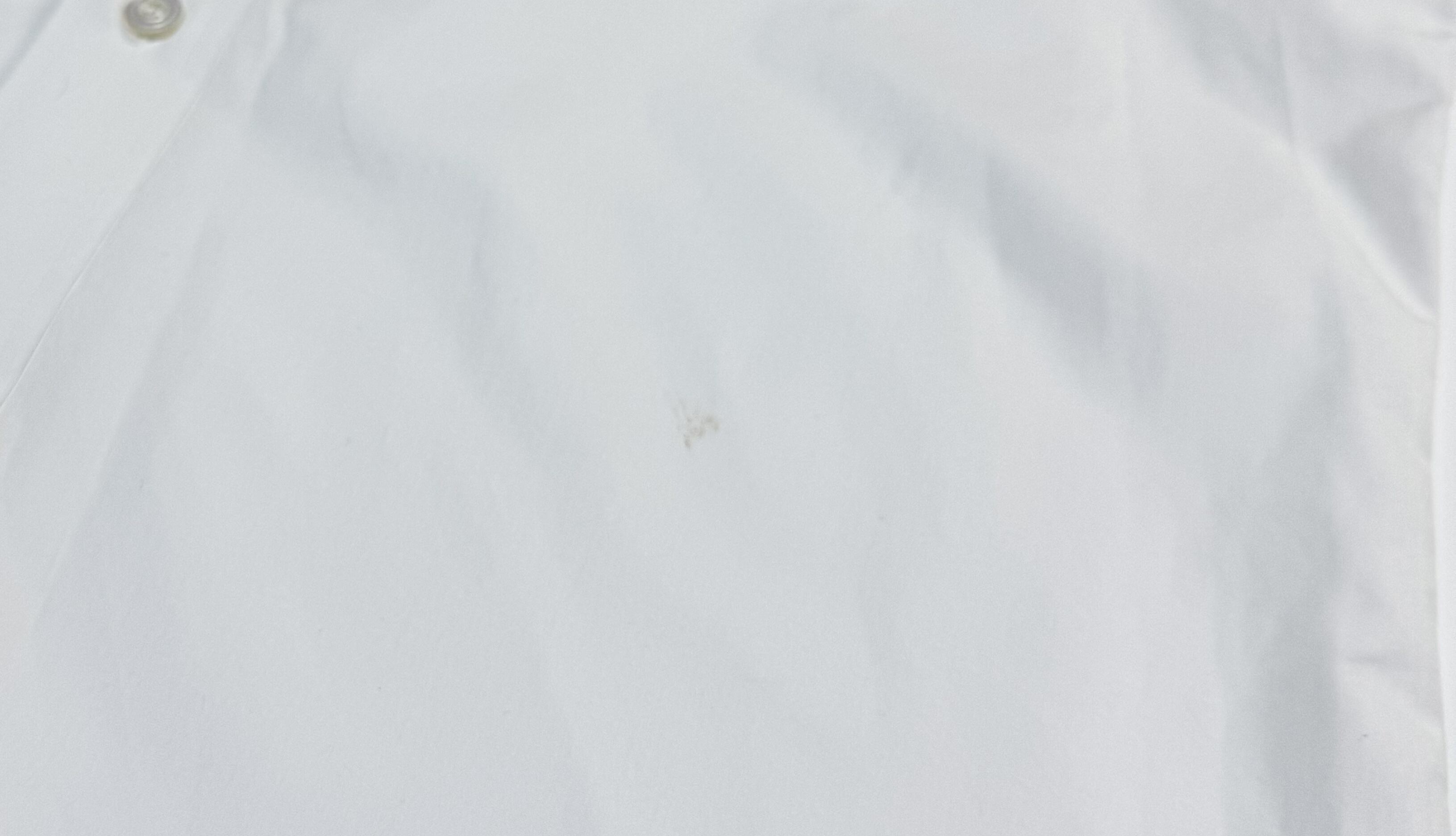 目立つ破れや大きなダメージはありませんが、真っ白なシャツという性質上、細かな汚れが気になる方にはおすすめできません。