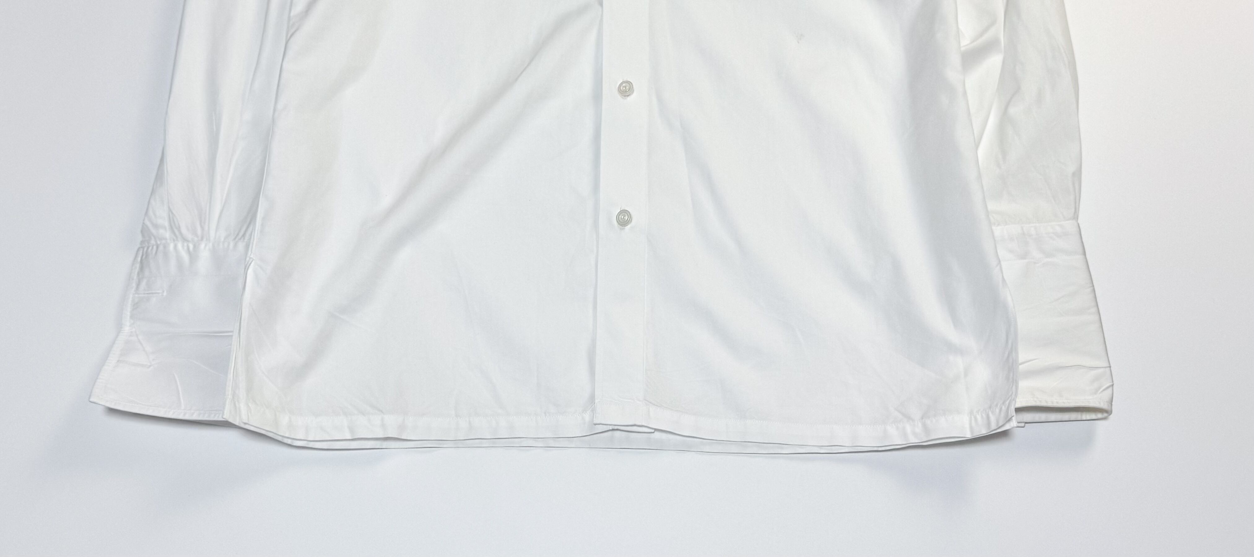 色味はプレーンなホワイト、袖口はドレッシーなダブルカフス仕様。