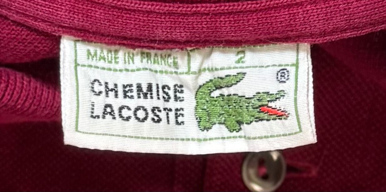 70年代後期〜80年代中期頃に見られる、上段が二分割された“CHEMISE LACOSTE”タグを備えた、希少なフランス製のロングスリーブポロシャツ。