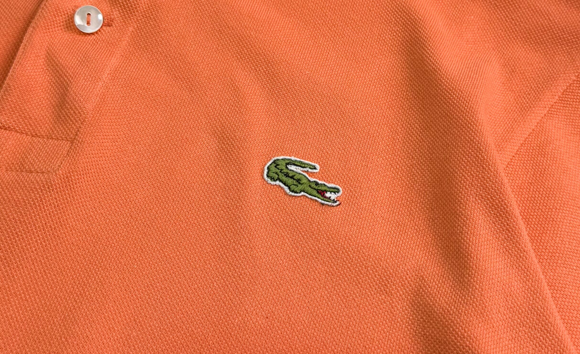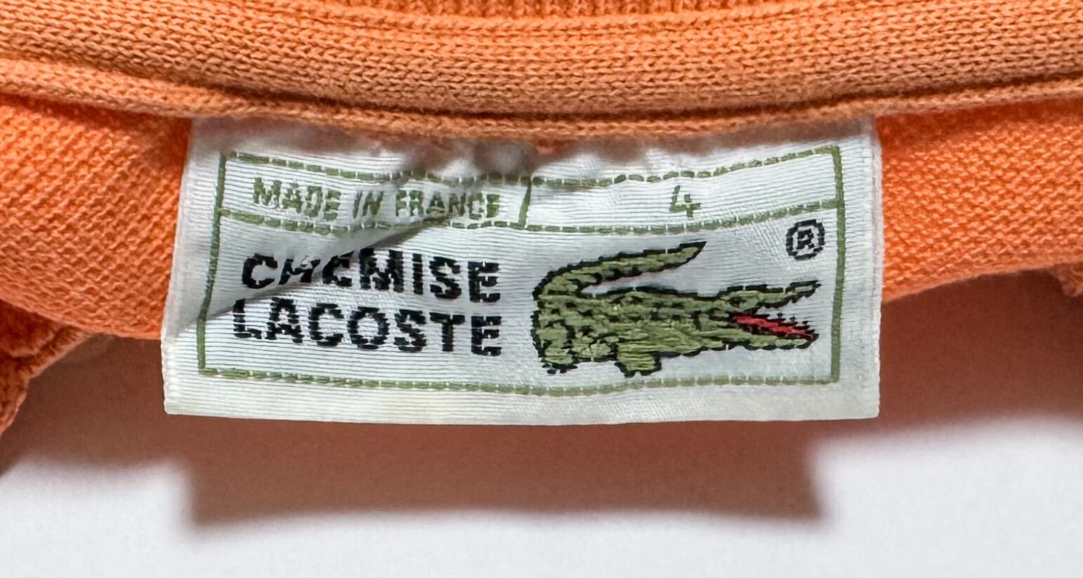 70年代後期〜80年代中期頃に見られる、上段が二分割された“CHEMISE LACOSTE”タグを備えた、希少なフランス製のショートスリーブポロシャツ。