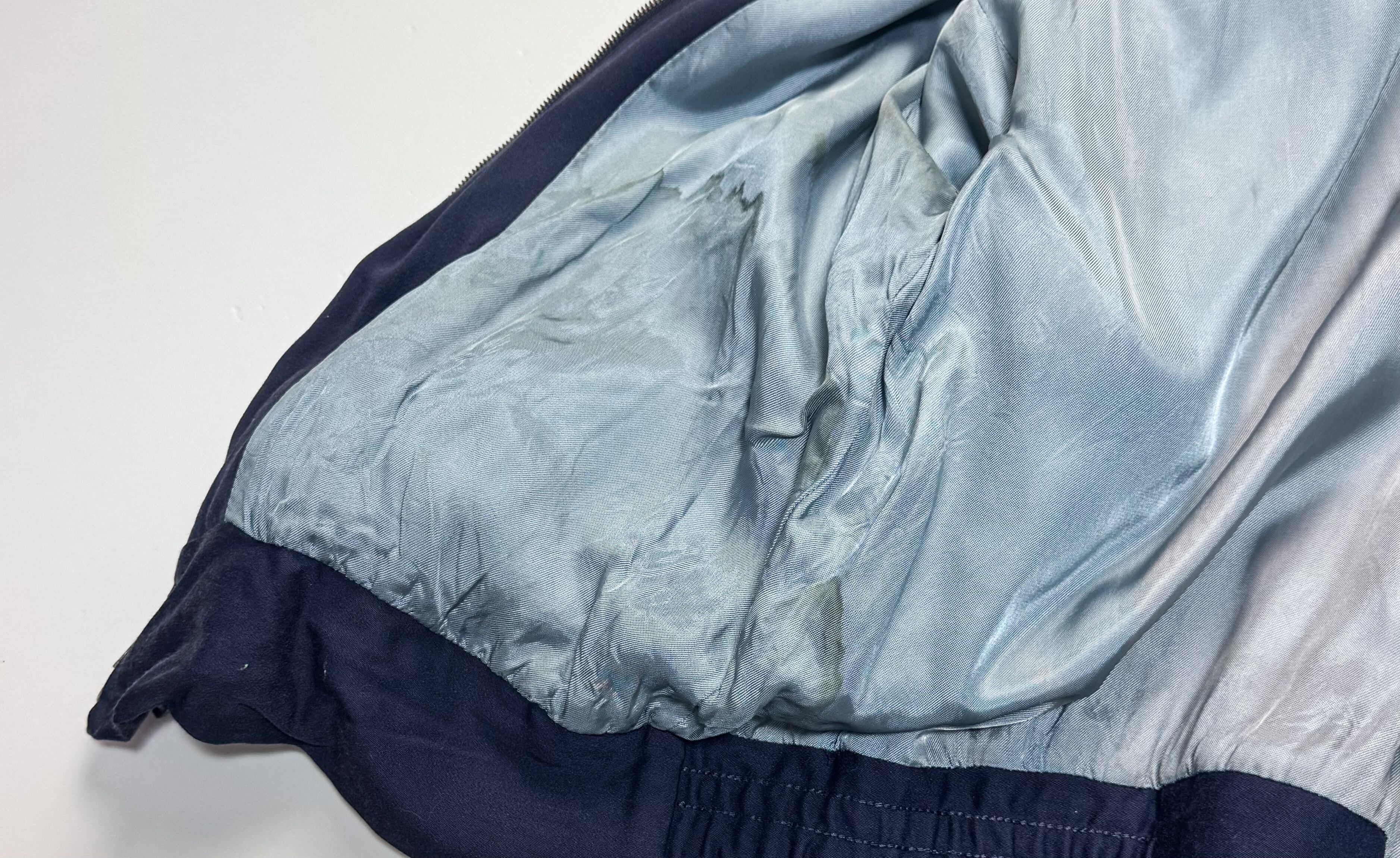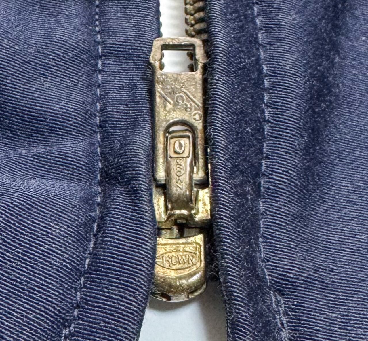 ジッパーはCROWNジップを使用。ライニングには滑らかなレーヨン系裏地、裾には伸縮のあるエラスティックバンド付きで、着心地とシルエットの両立がなされた仕様。なかなか出ないグッドコンディションです。
