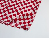 軽やかなコットンポリエステル生地に、ややフェードした赤・白のプリントご施されたされたキャッチーなデザインが魅力の一枚です。