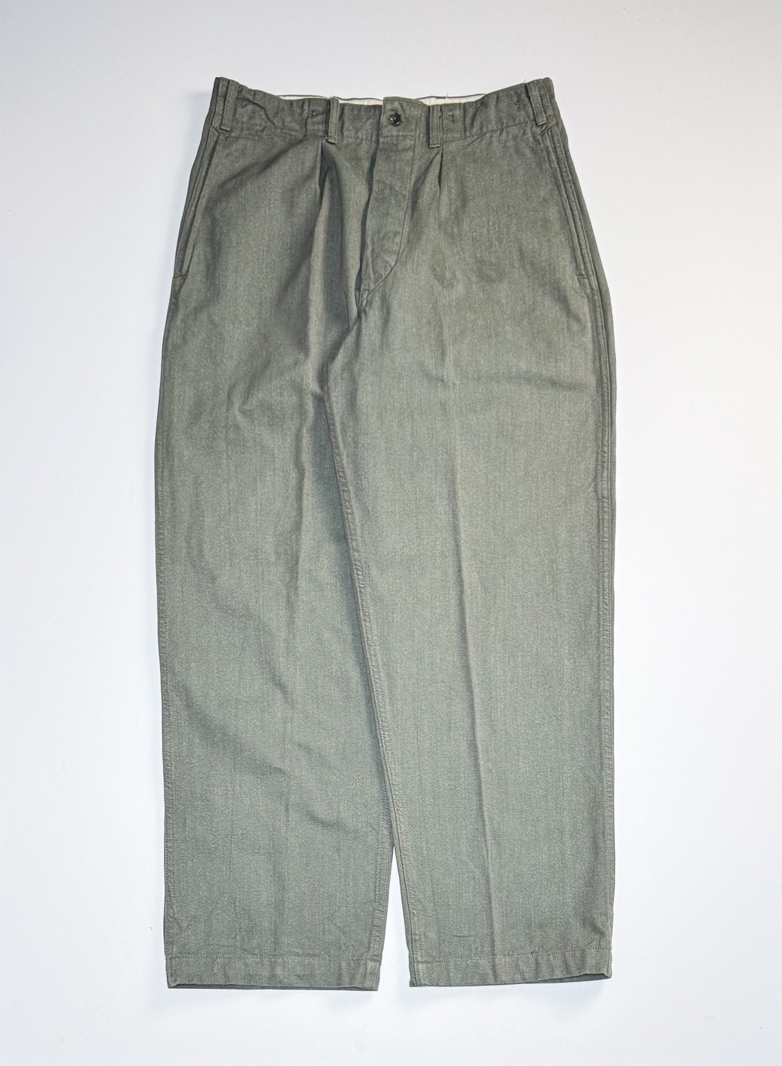 深めの股上に、ストンと落ちるワイドなストレートシルエット。無骨ながらどこか品のある一本です。