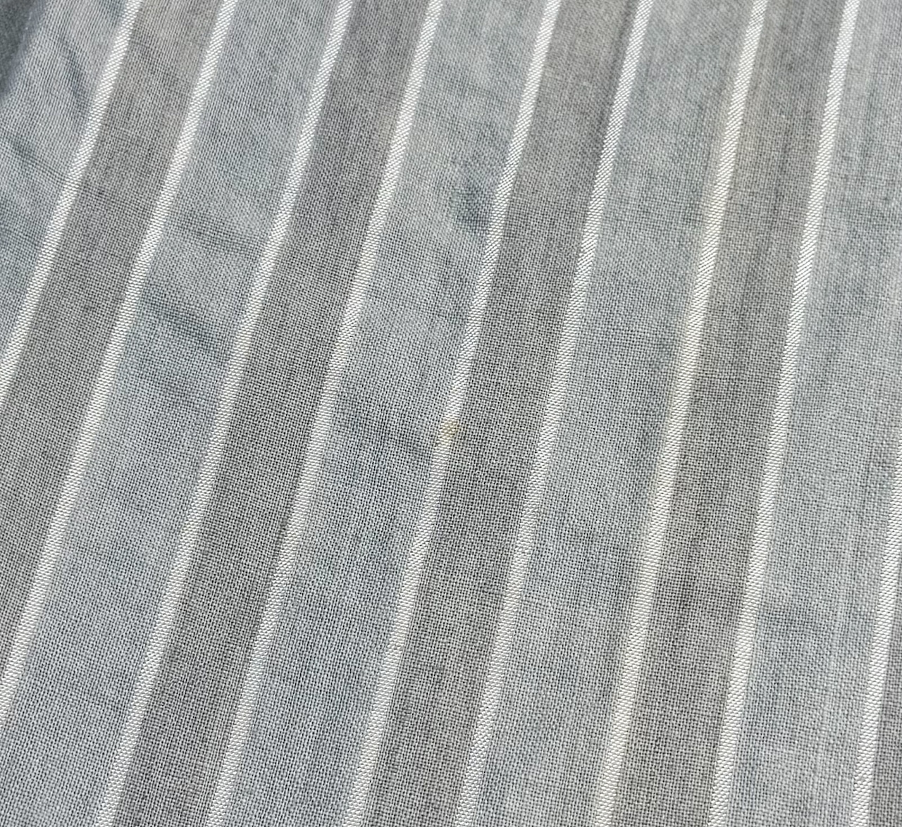 ライトグレーにホワイトのピンストライプが走る上品なデザインで、