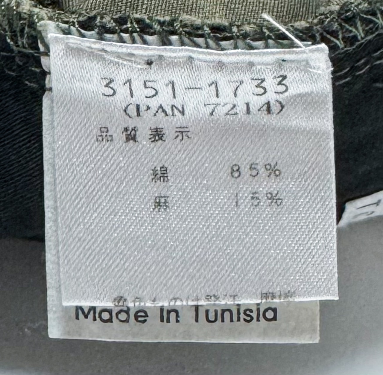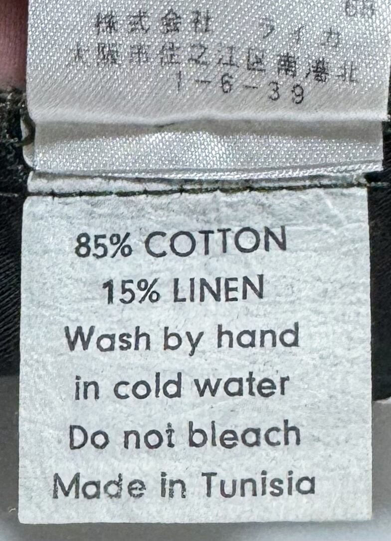 コットン85%、リネン15%の混紡素材。薄手で夏場にも活躍してくれる一般です。