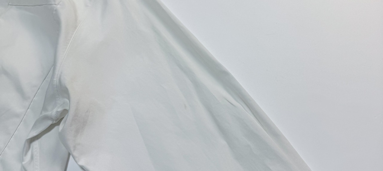 全体的に着用感はありますが、生地の状態は良好です。ただし、以下の点をご確認ください。