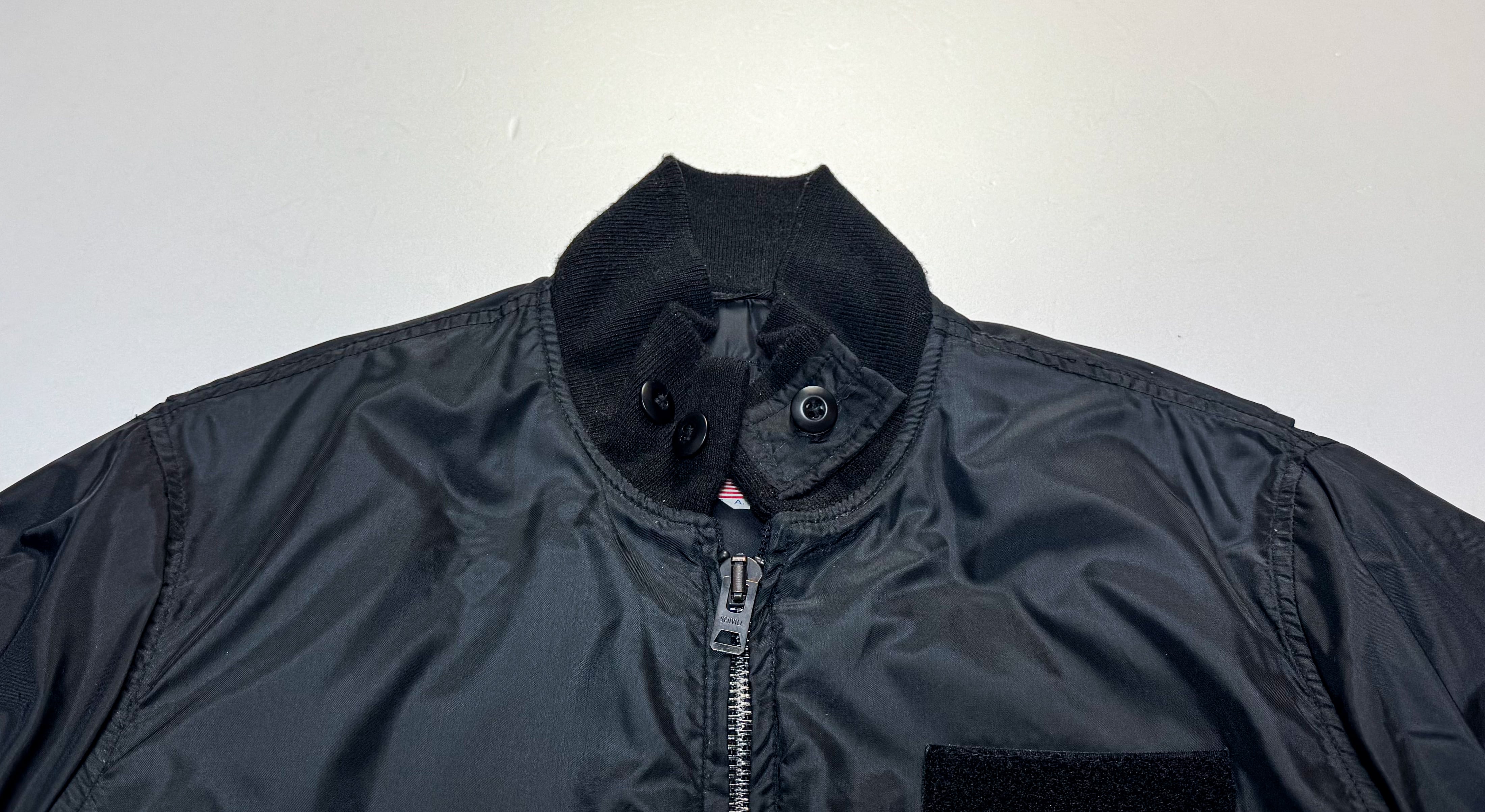アメリカの老舗ミリタリーブランド SPIEWAK が手掛けたG-8 WEPジャケット。US NAVYのデッキクルー用フライトジャケットをベースにしたモデルで、ブラック一色の無骨で短丈シルエットが魅力。USA製のしっかりとした作りで、中綿入り、ナイロンシェルとリブネック SCOVILLジップなど本格仕様です。