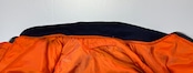ナイロン特有の深い光沢と、裏地の鮮やかなレスキューオレンジが象徴的な1着です。