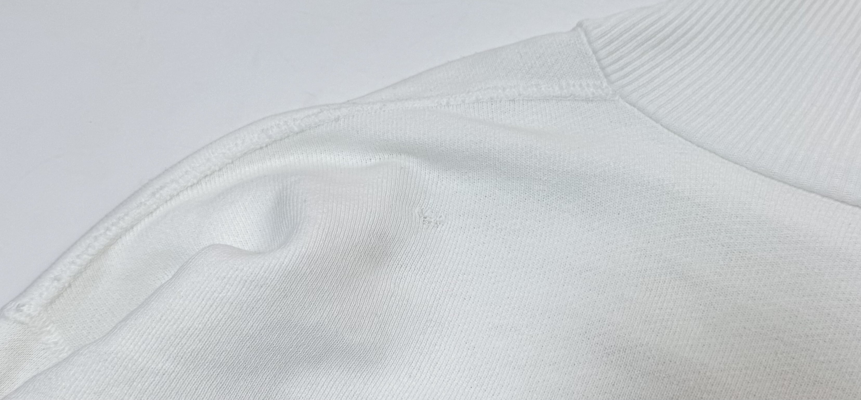 ホワイトボディ特有の薄い汚れや、襟・袖周りに小さなダメージはありますが、