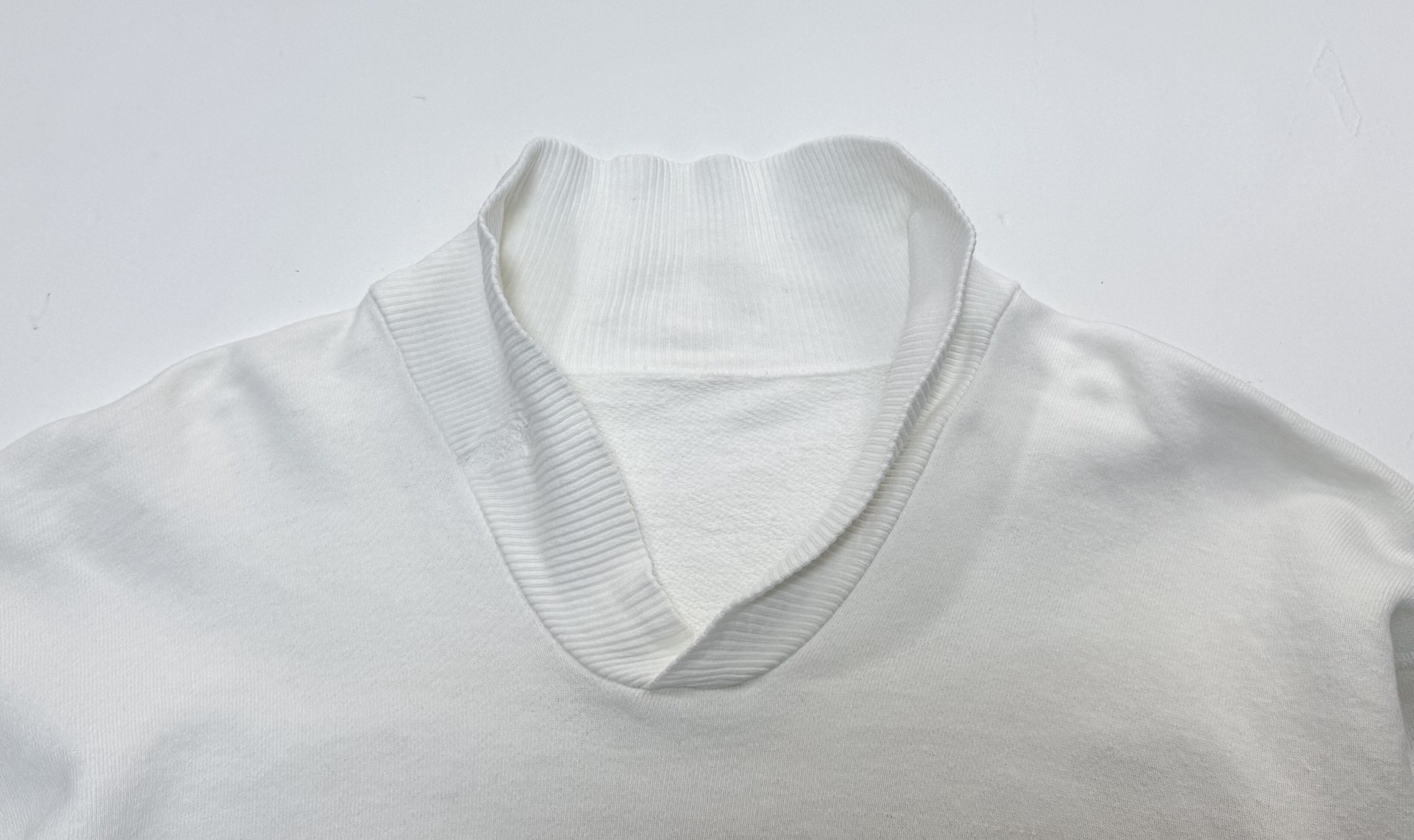 タグは欠損していますが、セットインスリーブに約8cm弱の長リブ、柔らかく目の詰まったコットンボディ。