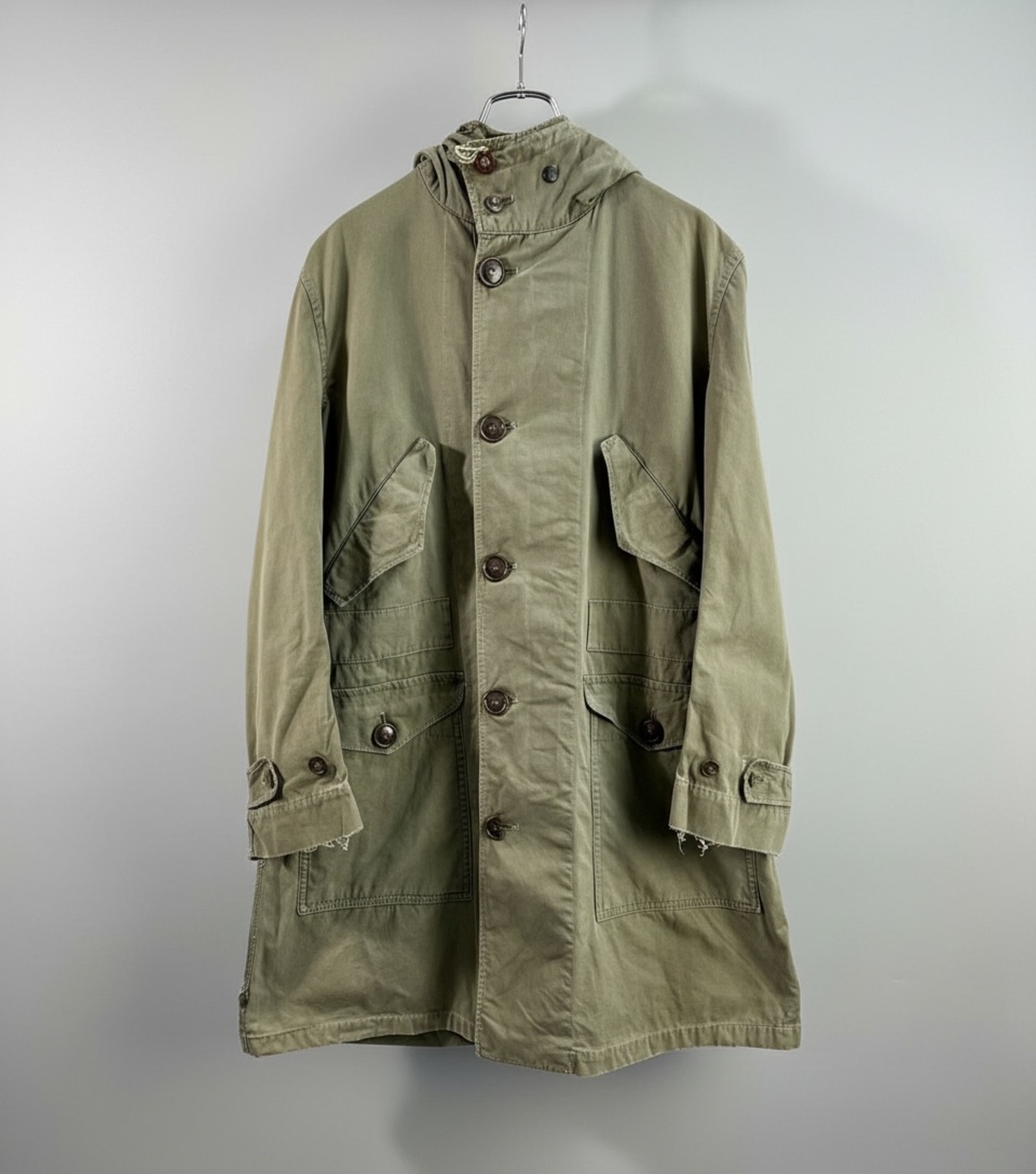 袖先・裾のほつれやボタン欠損など使用感ありますが、古着慣れされている方・ミリタリーの変遷を楽しめる方におすすめのコンディションです。