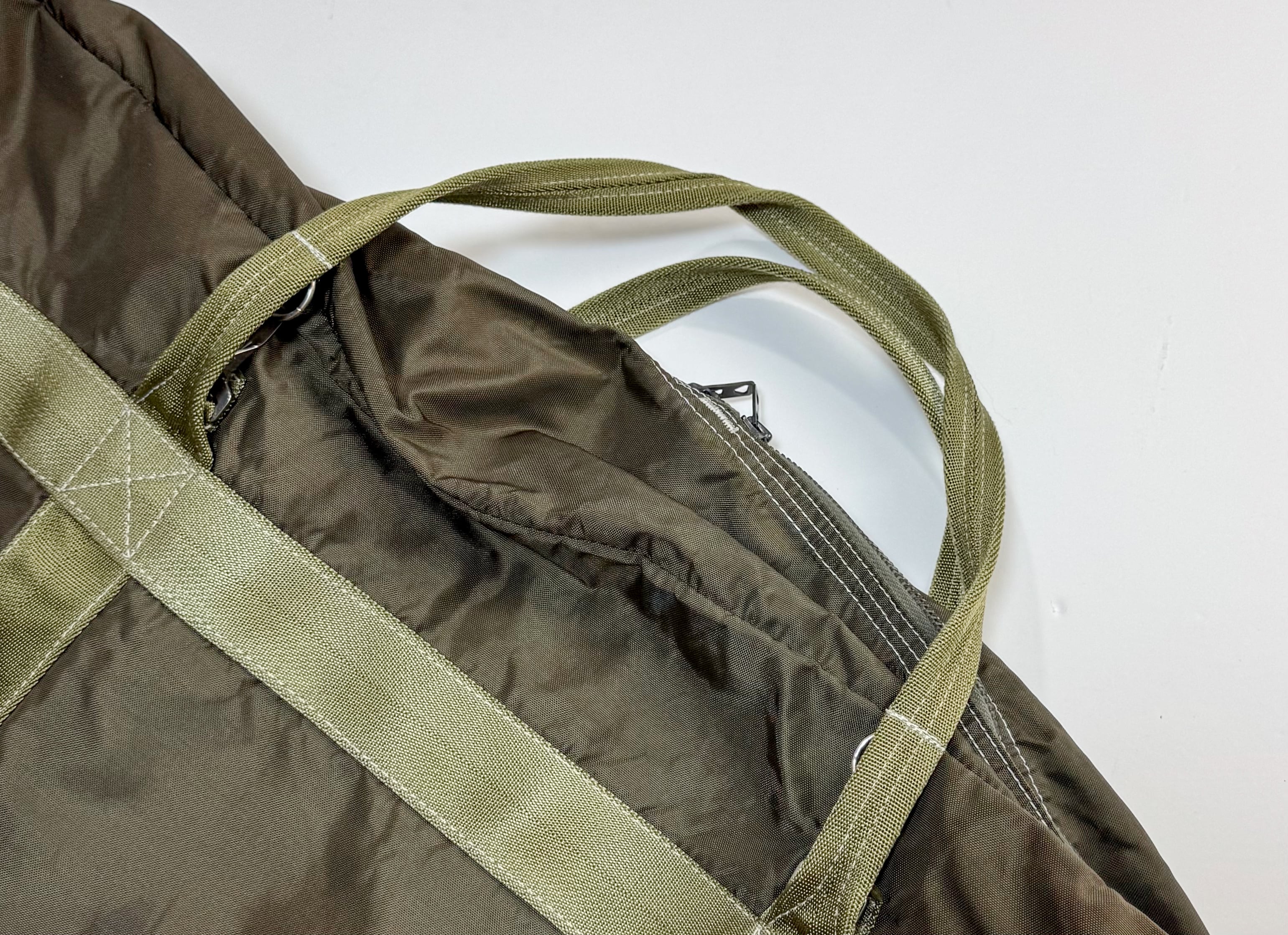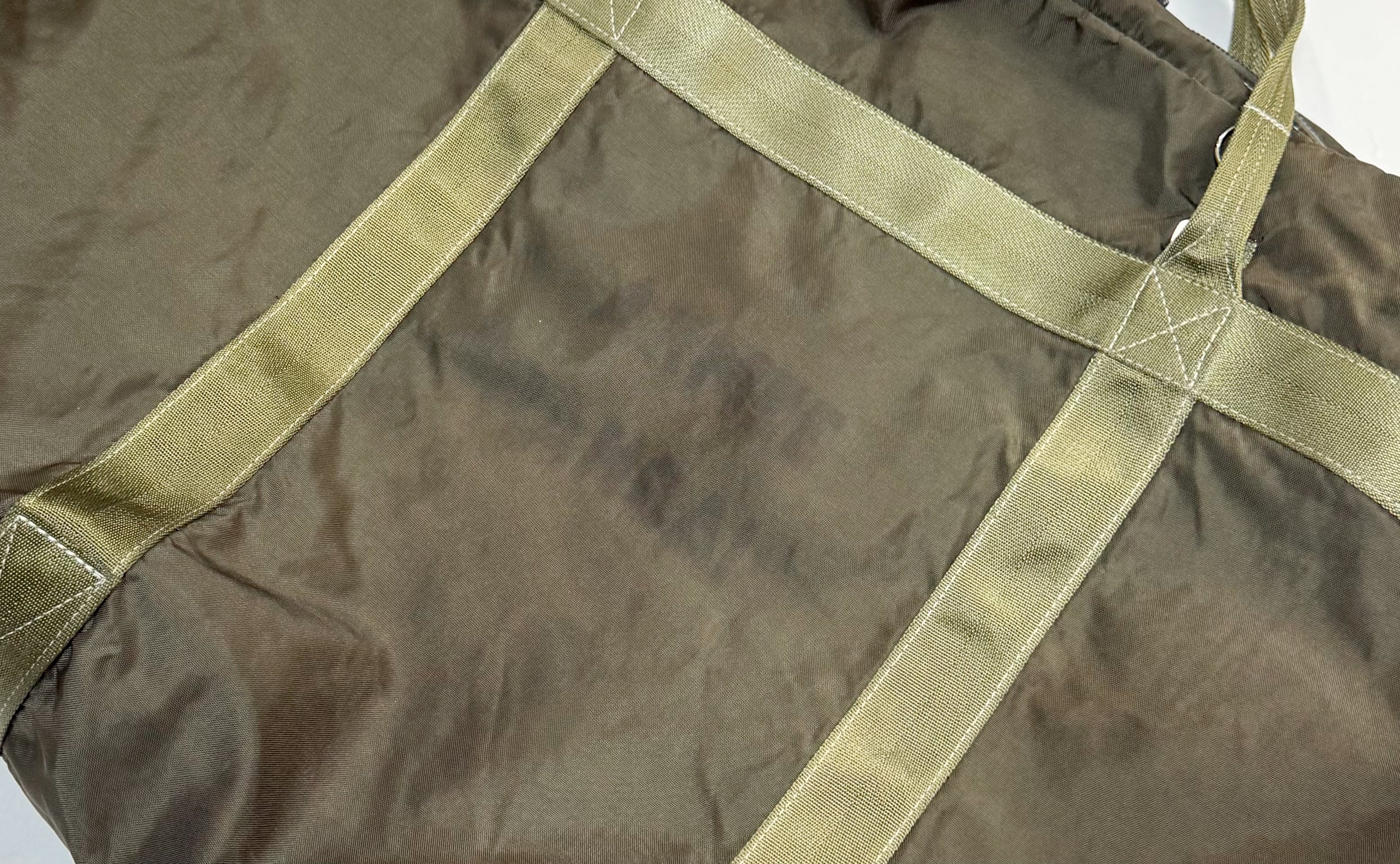 素材はタフなナイロン製。実際に空挺部隊で使われていた背景からも、軽量ながら高い強度が特徴です。