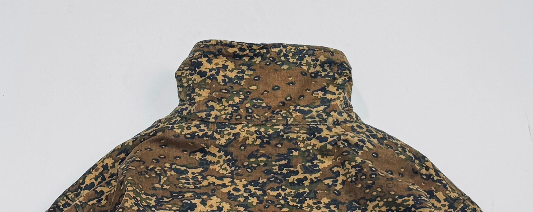 WW2ドイツ軍の「オークリーフ迷彩」から着想を得たと思われる独特のカモフラージュパターンは、ミリタリーの空気感を纏いながらもA.P.C.らしいクリーンな解釈で再構築されています。