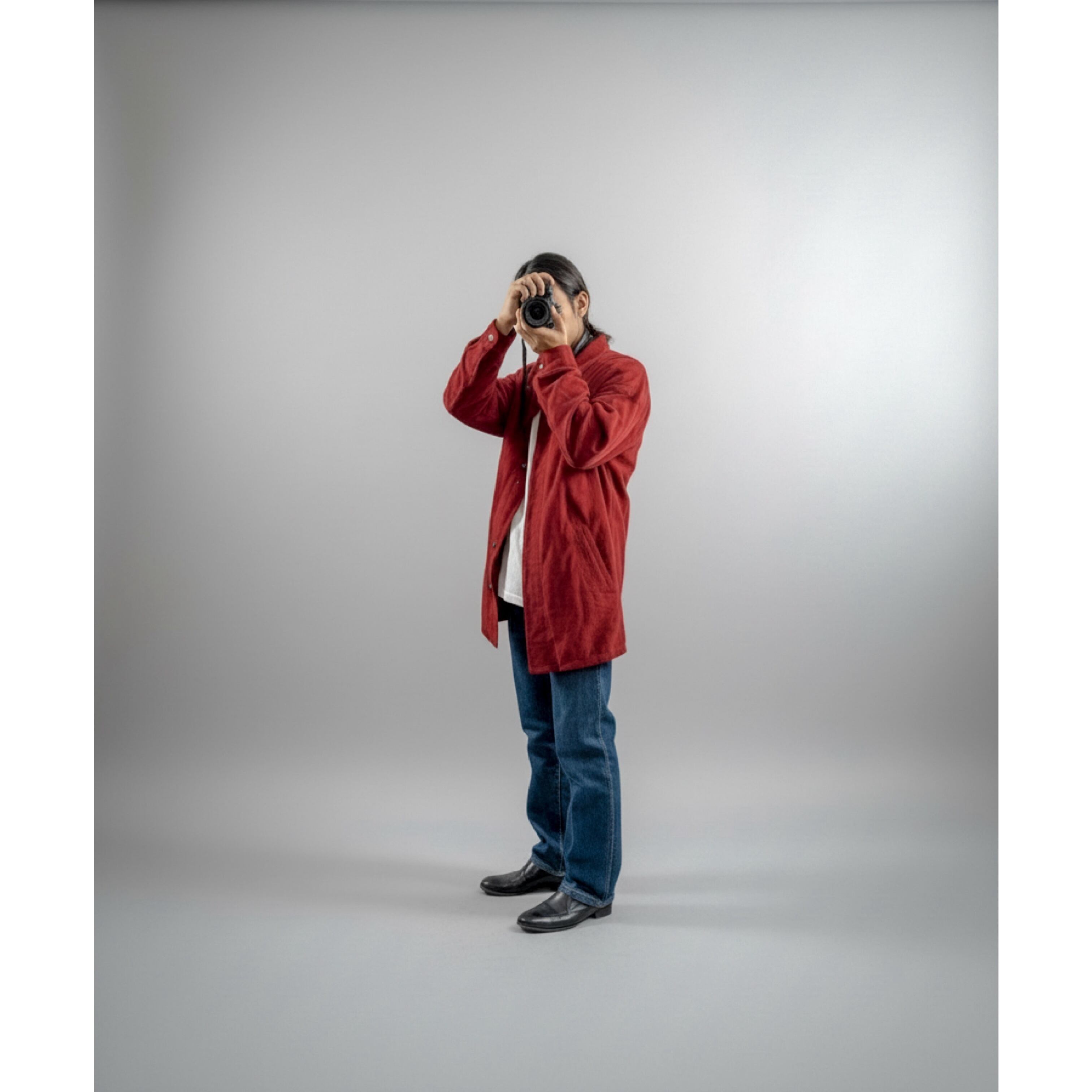 肩が落ちるリラックスしたラインで、着丈は長めのフィールドジャケット風。スラックスにもデニムにも相性良く、スタイリングの主役になる一枚です。
