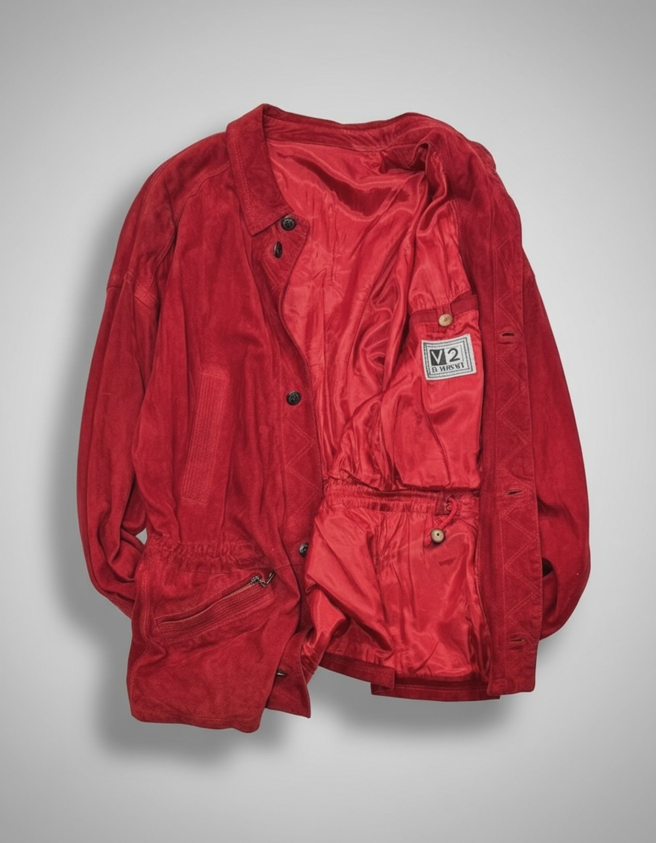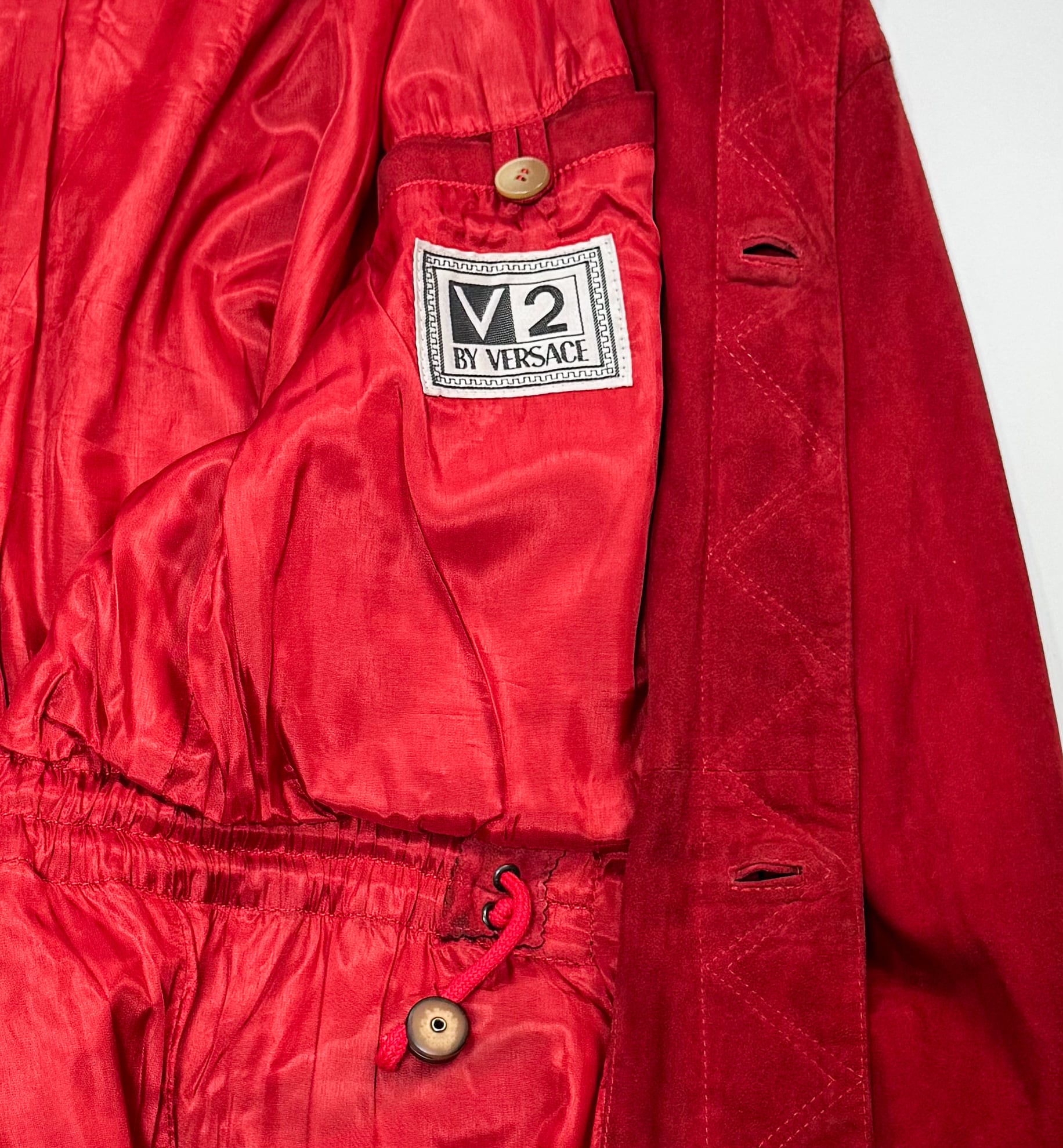 90’s V2 BY VERSACE RED SUEDE DRAWSTRING JACKET (size 50)