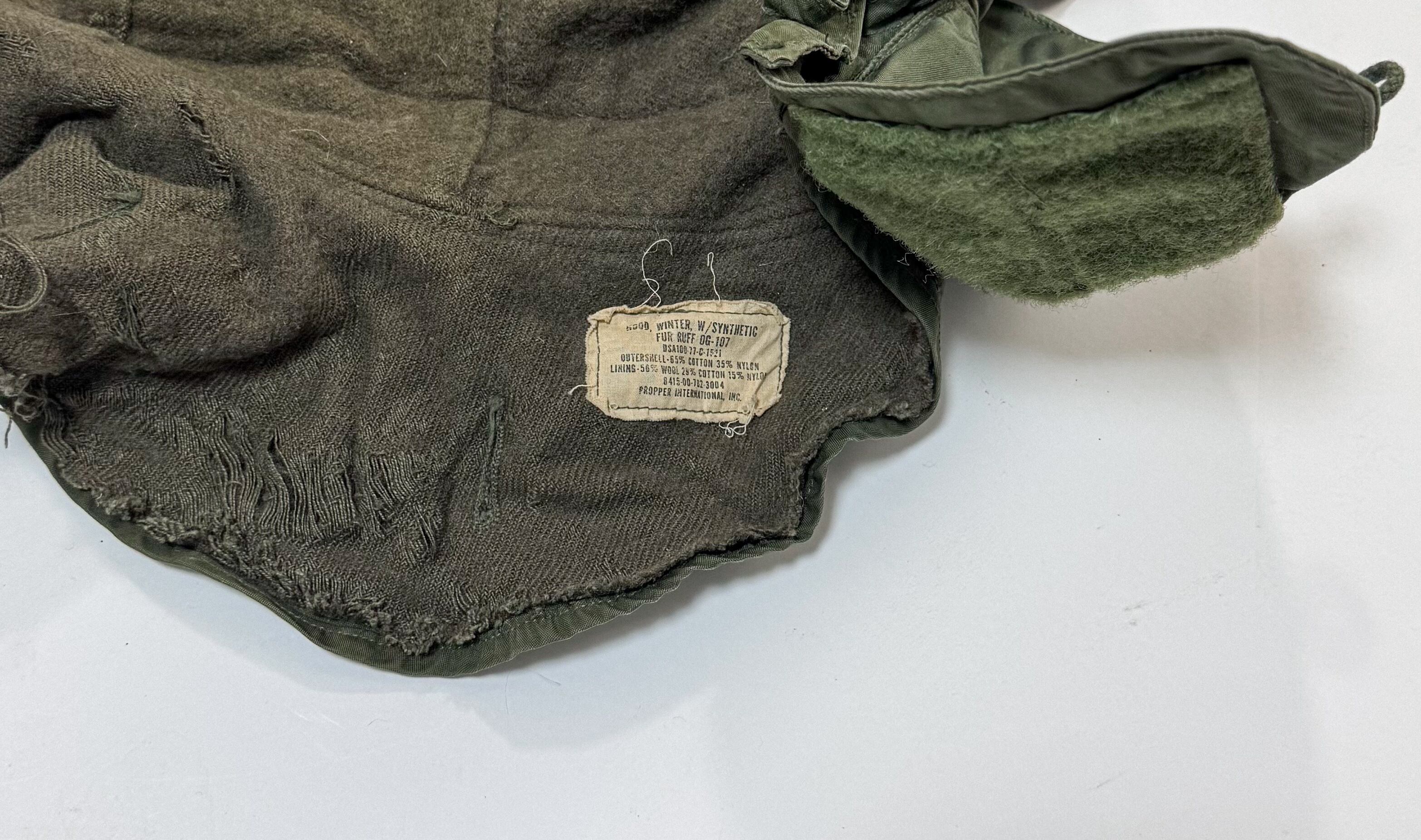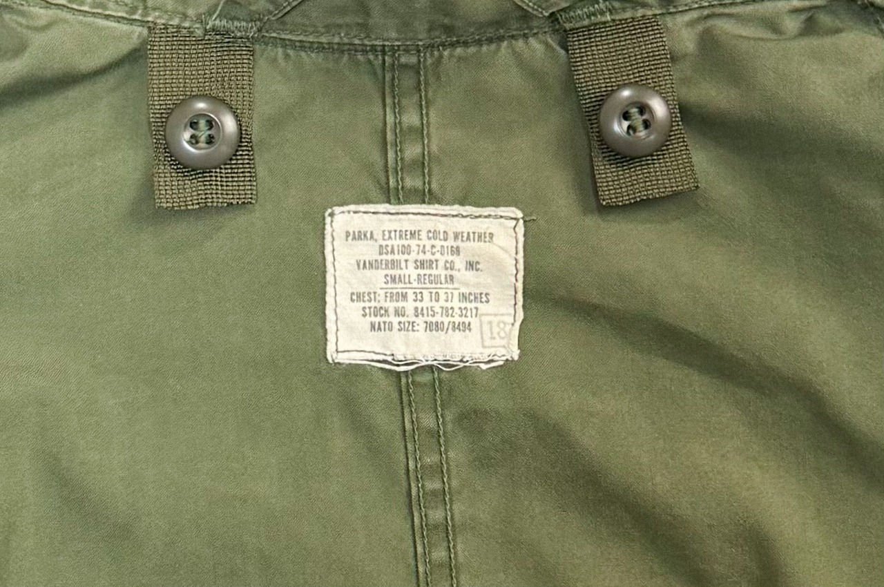 シェル・ライナー・フードそれぞれ製造年が異なります。シェルとライナーは74年、フードは77年の個体になります。