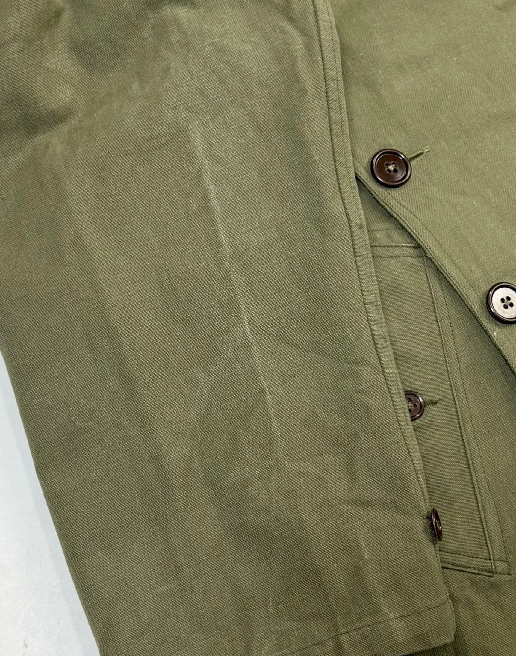 戦後フランス軍の合理化された生地感そのもので、ドレープの出方がとても美しい個体。