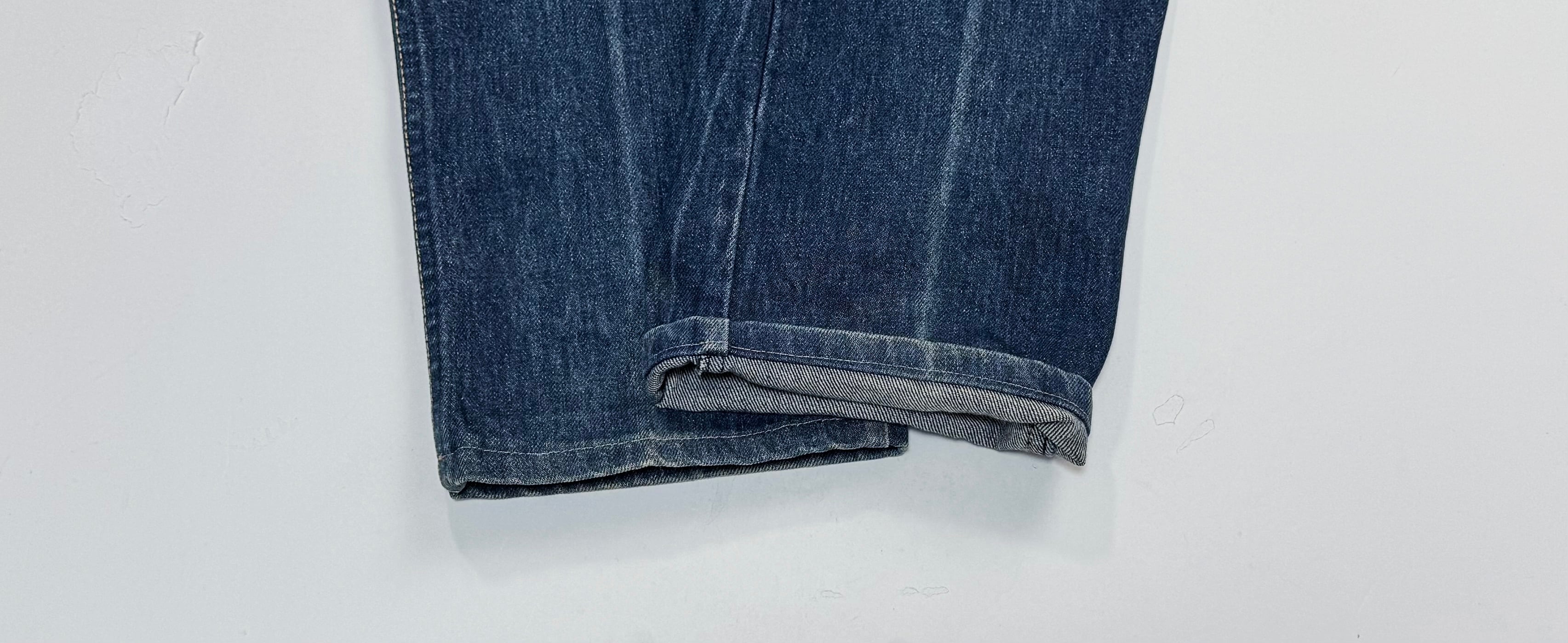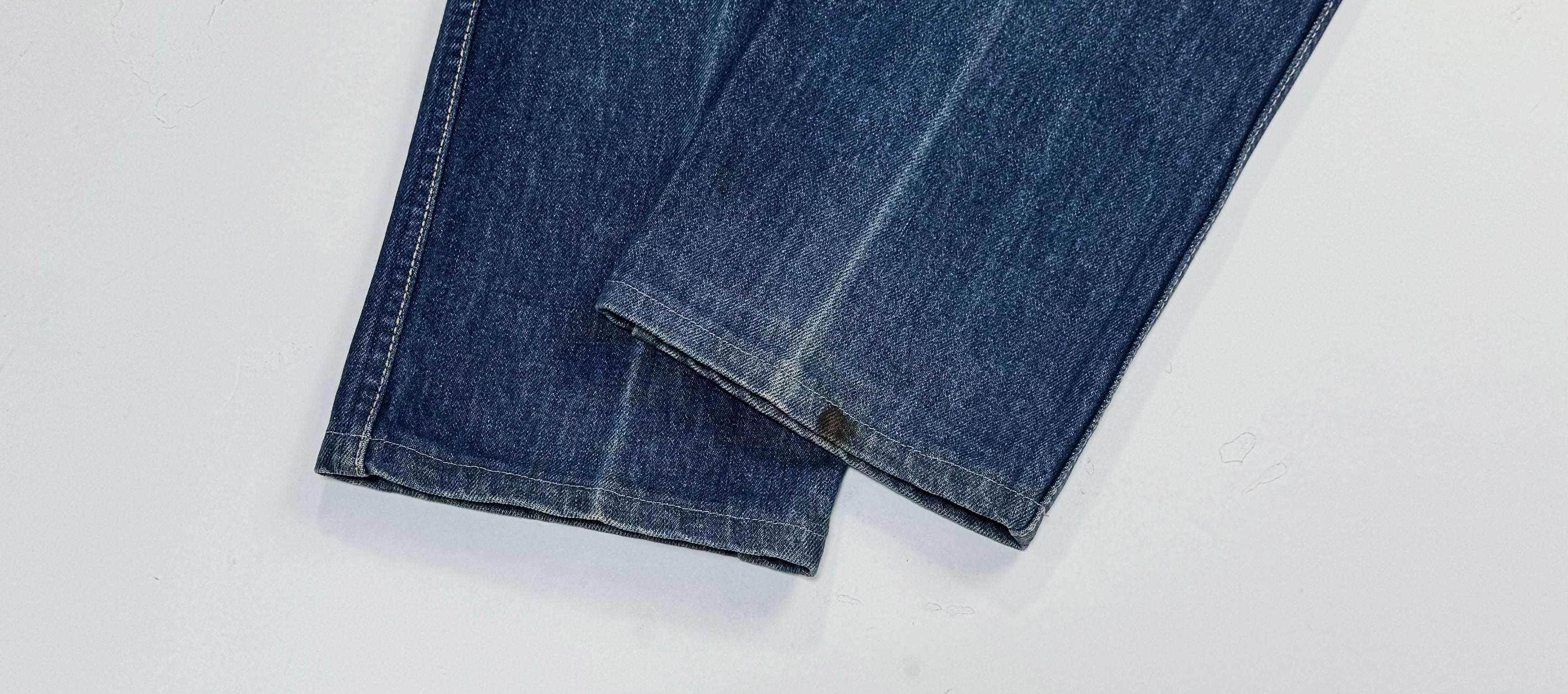 生地自体の致命的なダメージや大きな破れはなく、古着慣れされた方でしたら問題なく着用していただける一本です。