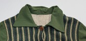グリーンを基調に、ベージュやダークトーンが織り込まれたストライプ柄のニット地を前身頃に使用し、袖・背面・襟・ポケットにはジャージー素材を切り替えた、フランスらしい一着です。