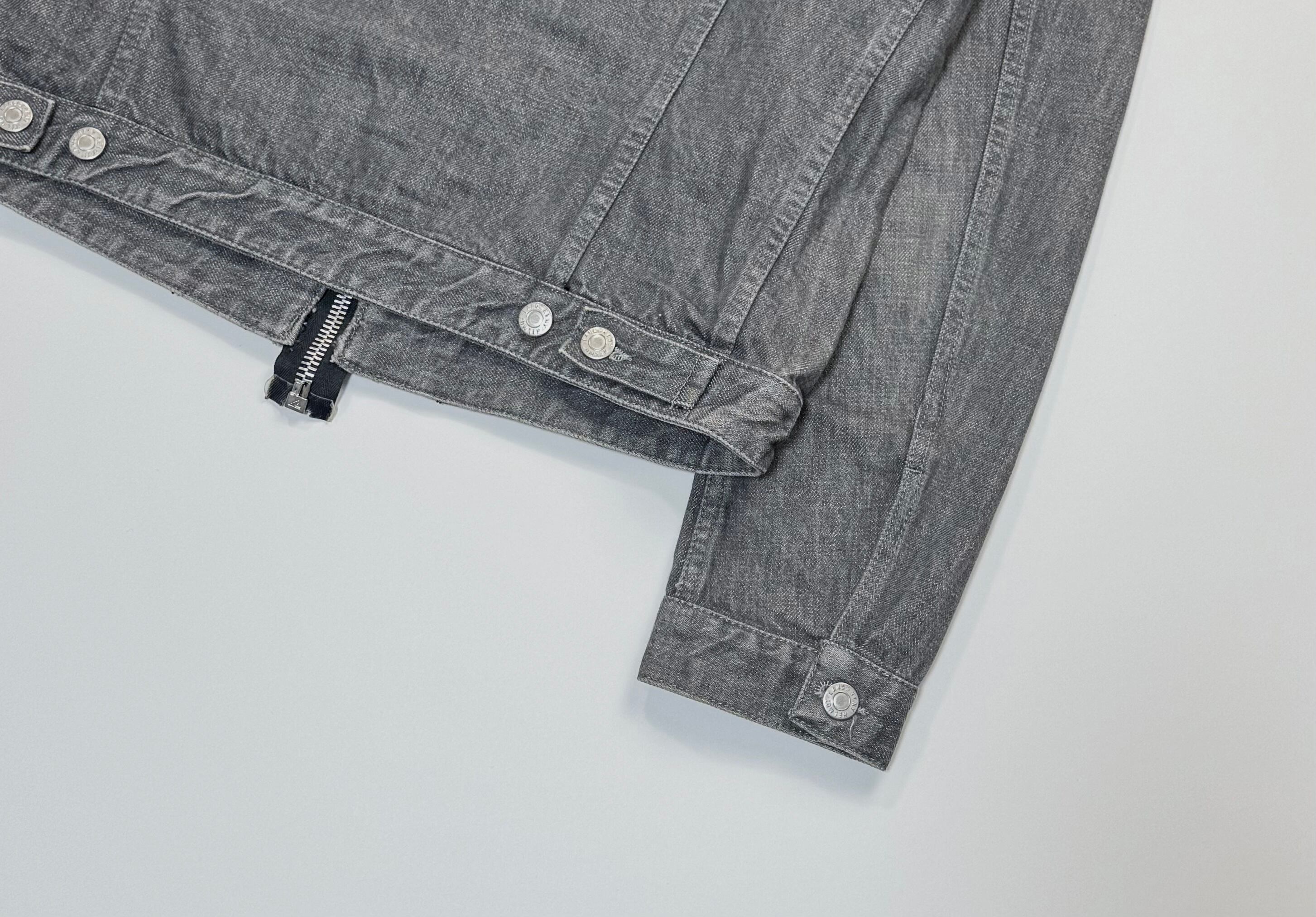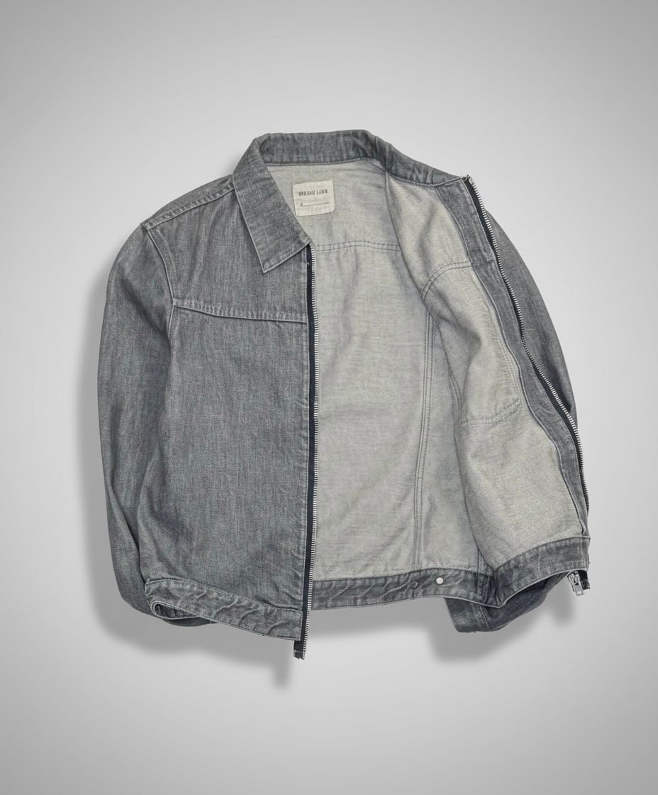 いわゆるトラッカージャケットをベースにしながら、ボタンではなくジップに置き換えることで、より無機質でシャープな印象に仕上げられています。