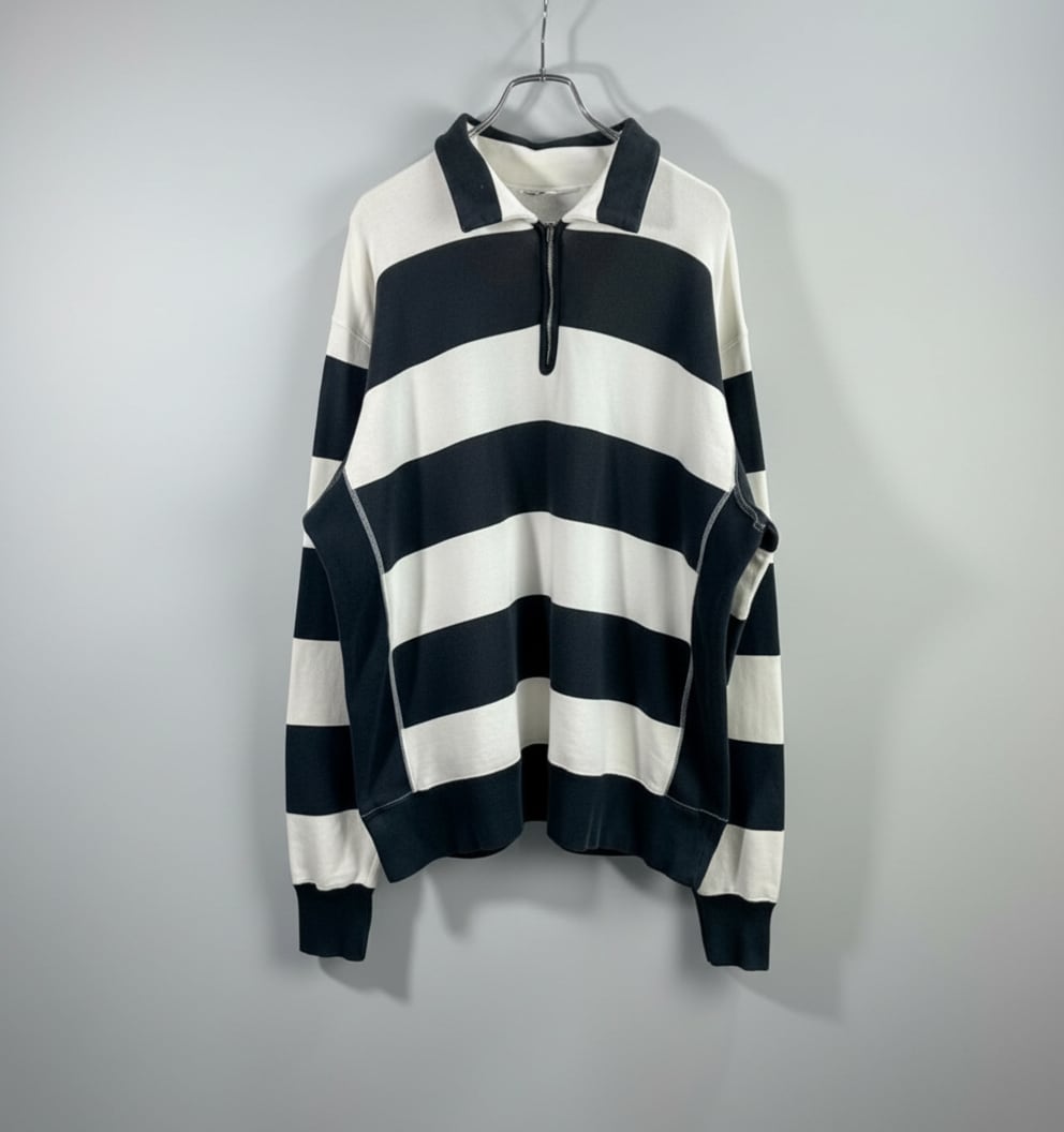 90’s GOODENOUGH HALF ZIP BORDER SWEATSHIRT ( Black )