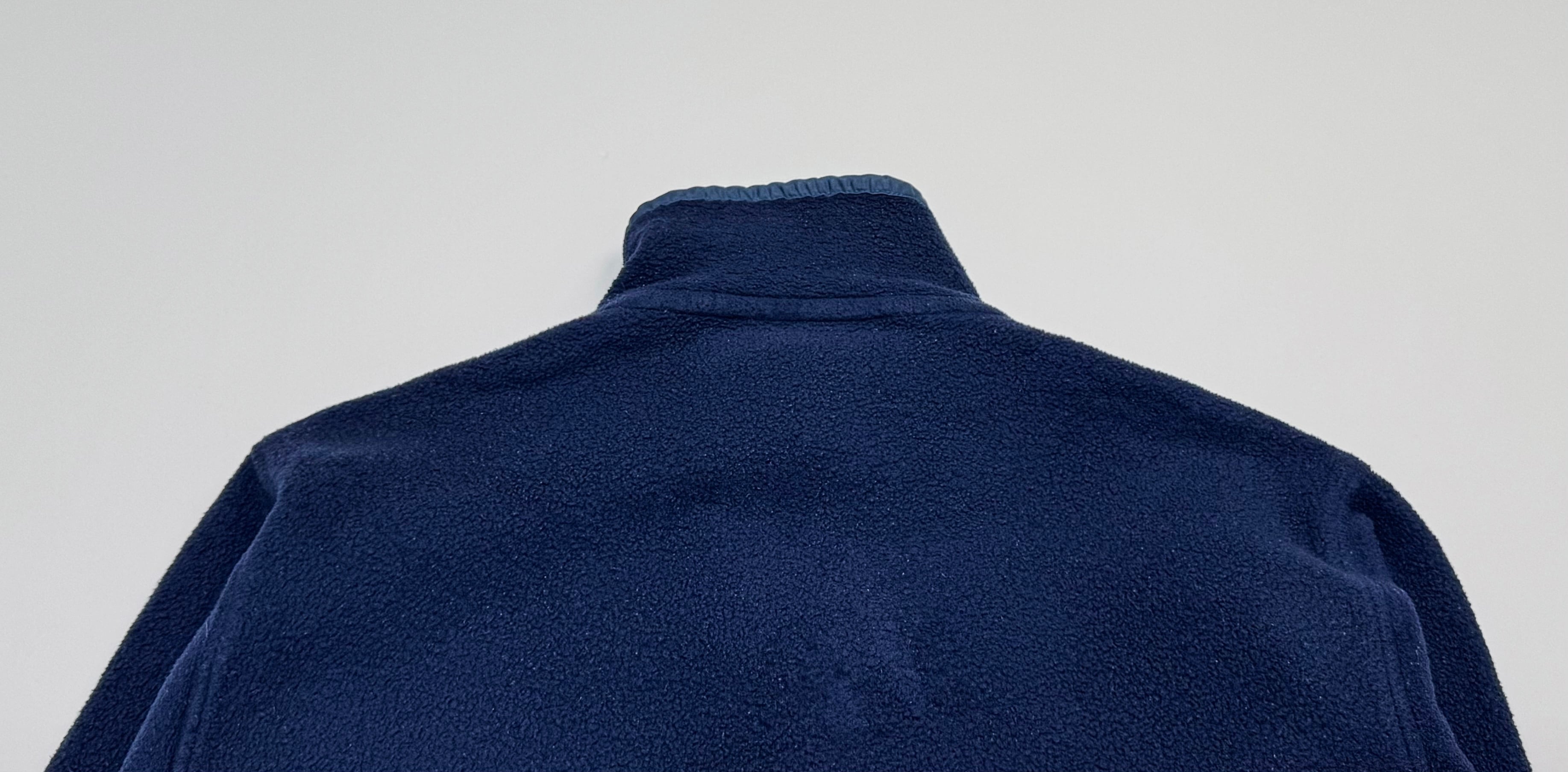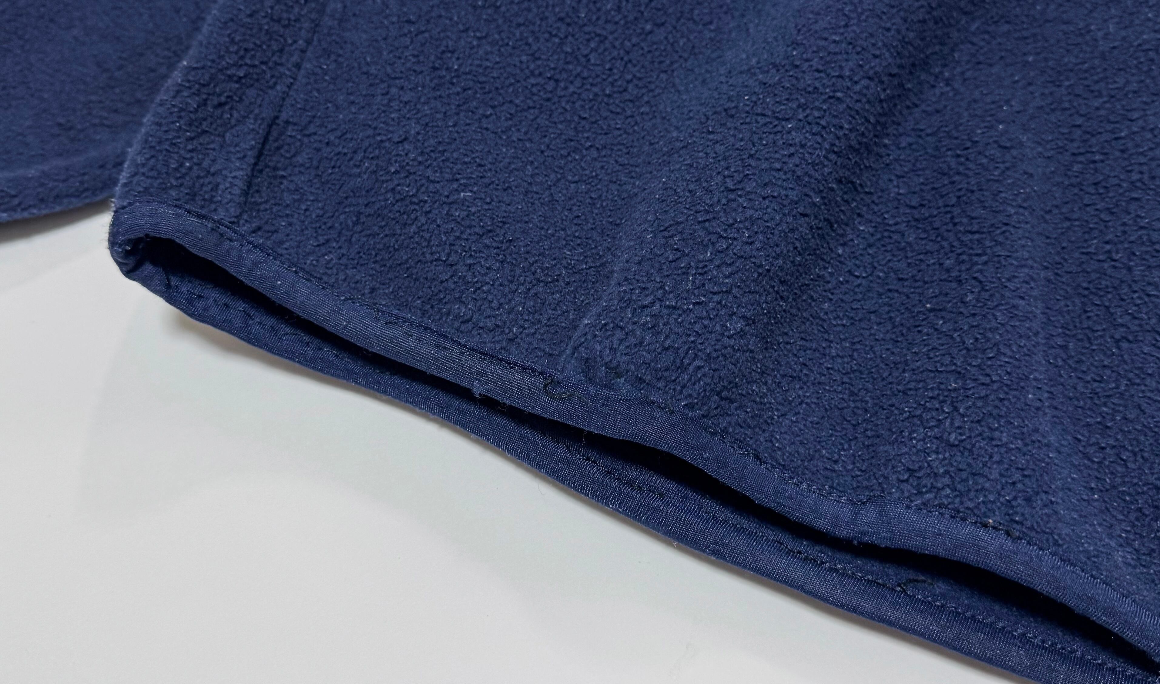 フリース生地には着用に伴う潰れが見られ、所々に毛玉の付着がございます。