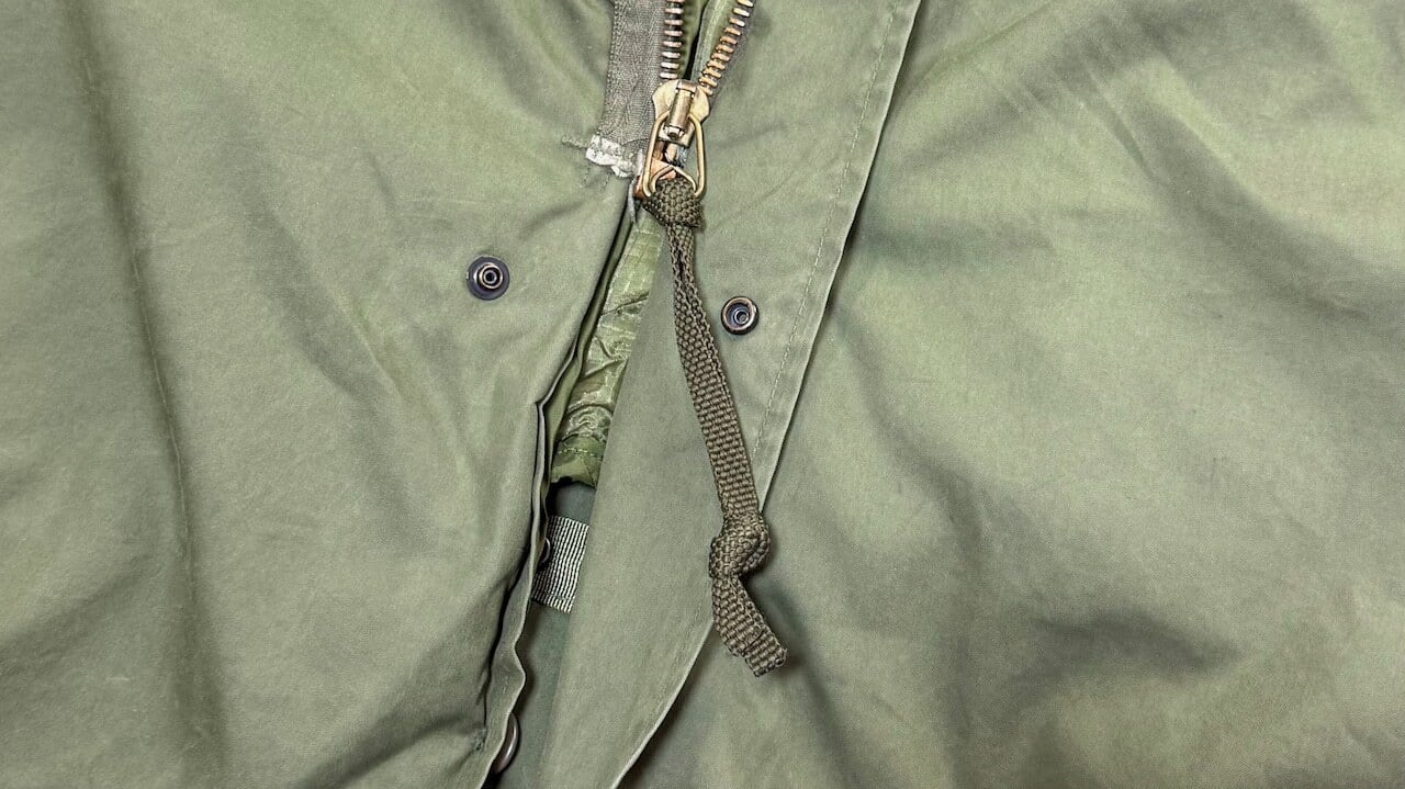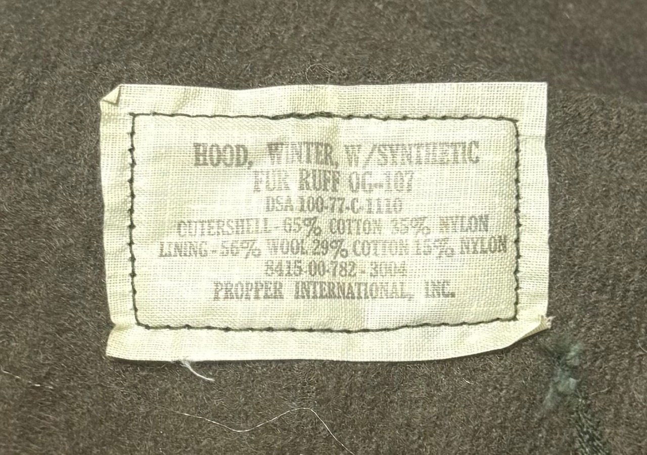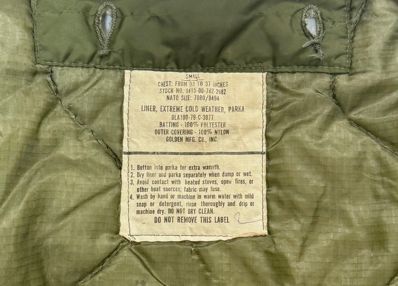 シェル・ライナー、フード、それぞれ製造年が異なります。シェルは83年、ライナーは79年、フードは77年の個体になります。