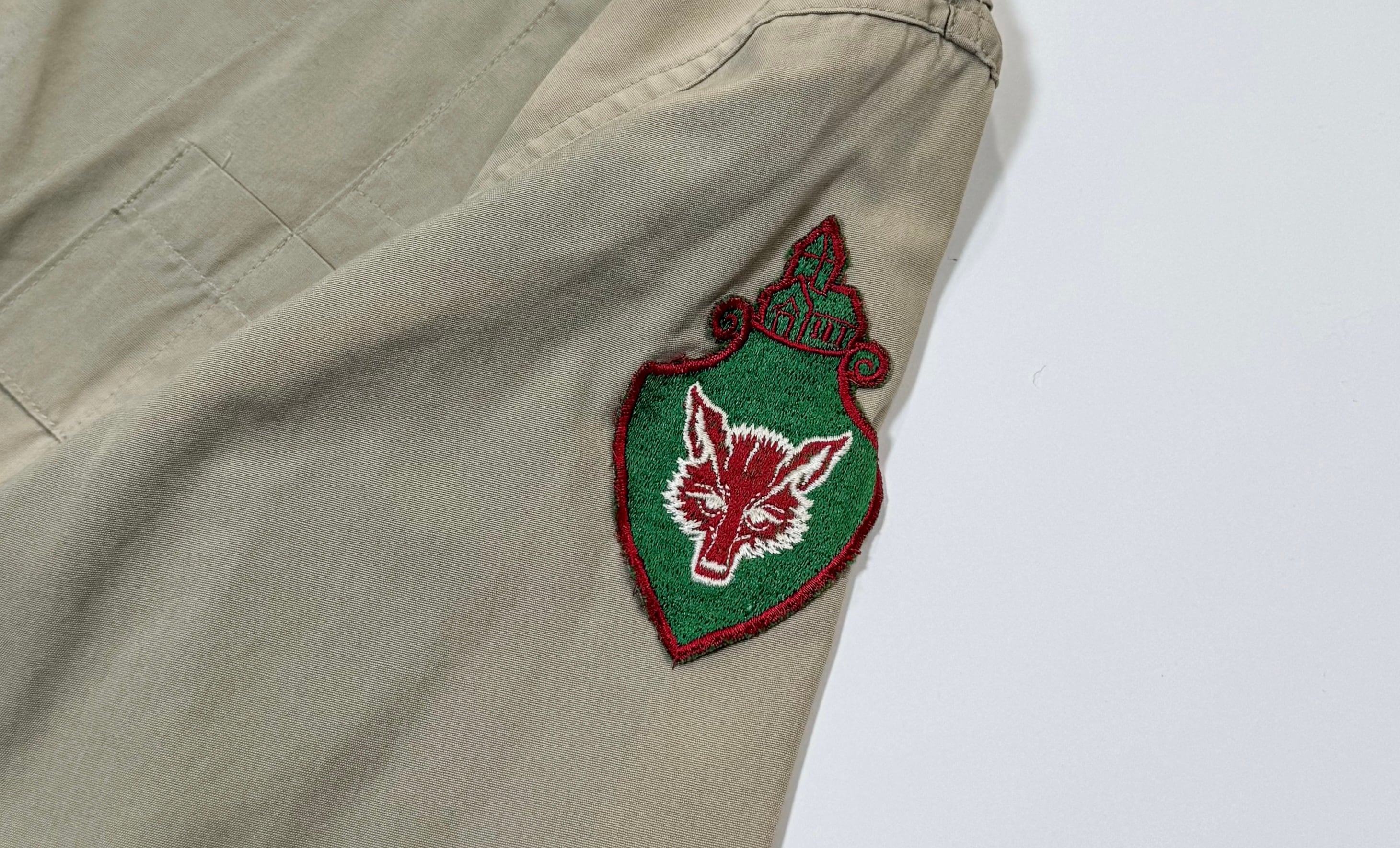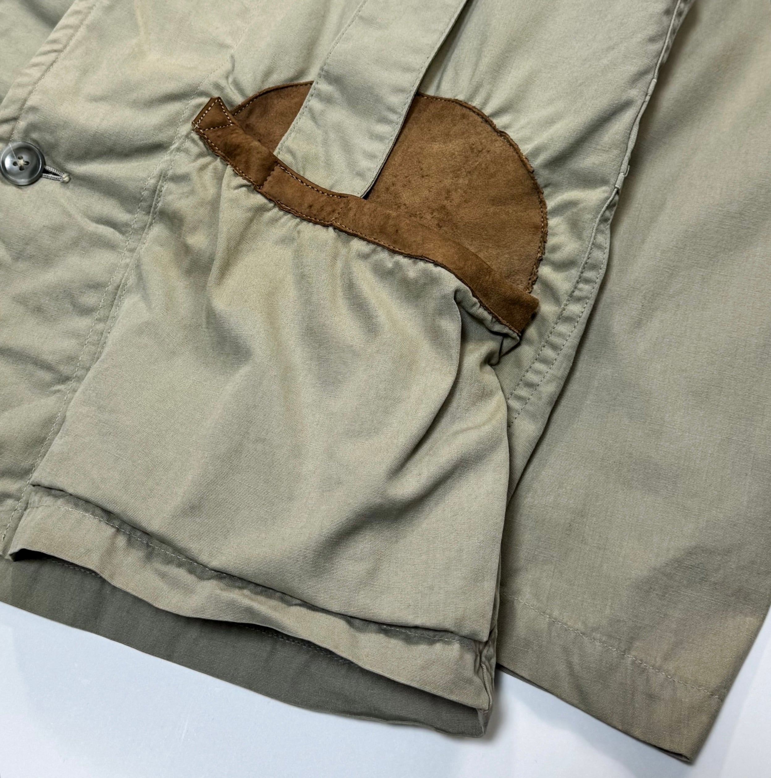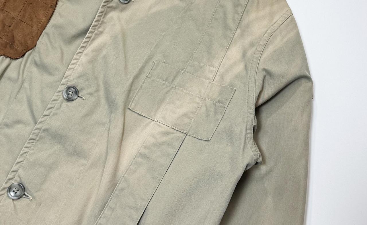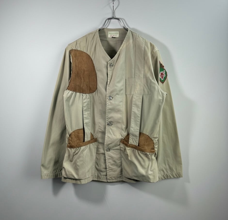 当時のハンティング/アウトドアウェアらしい実用性を色濃く残した一着で、スエードパッチや立体的なポケット配置など、機能美の詰まったデザインが特徴です。
