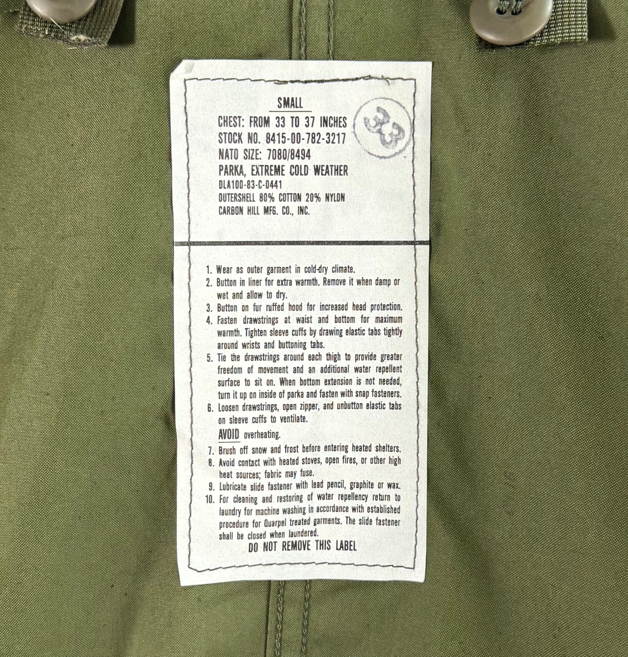 状態はシェル、ライナー、フード共に水洗いされていないデッドストックコンディションとなります。