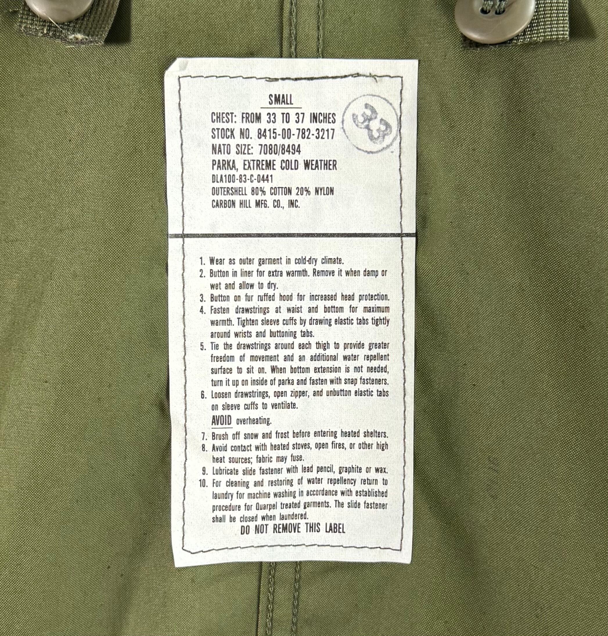 【Deadstock / Full Set】US ARMY M-65 FISHTAIL PARKA ( Small )