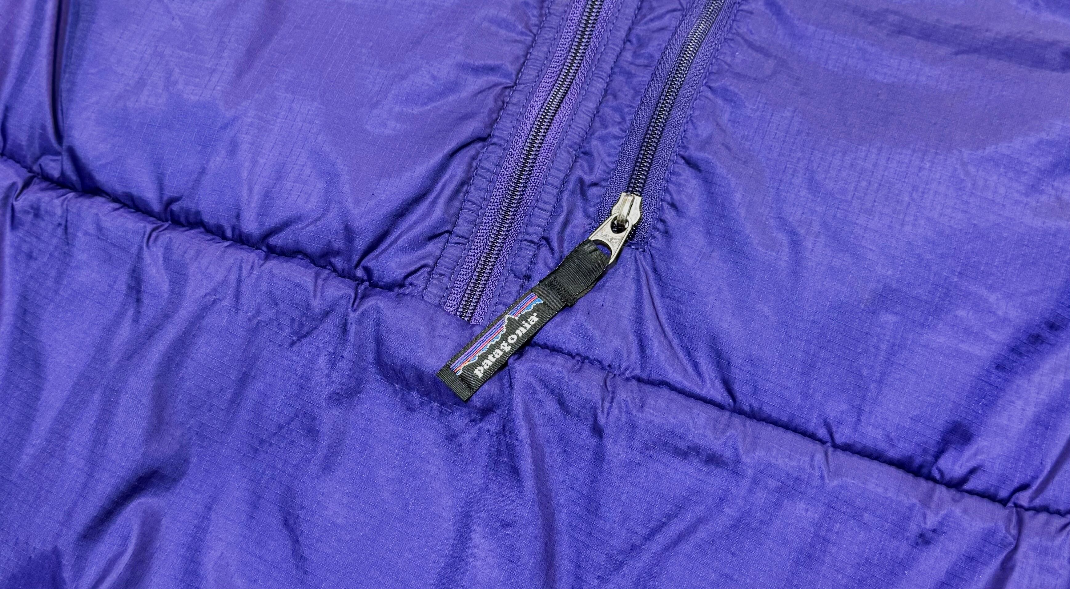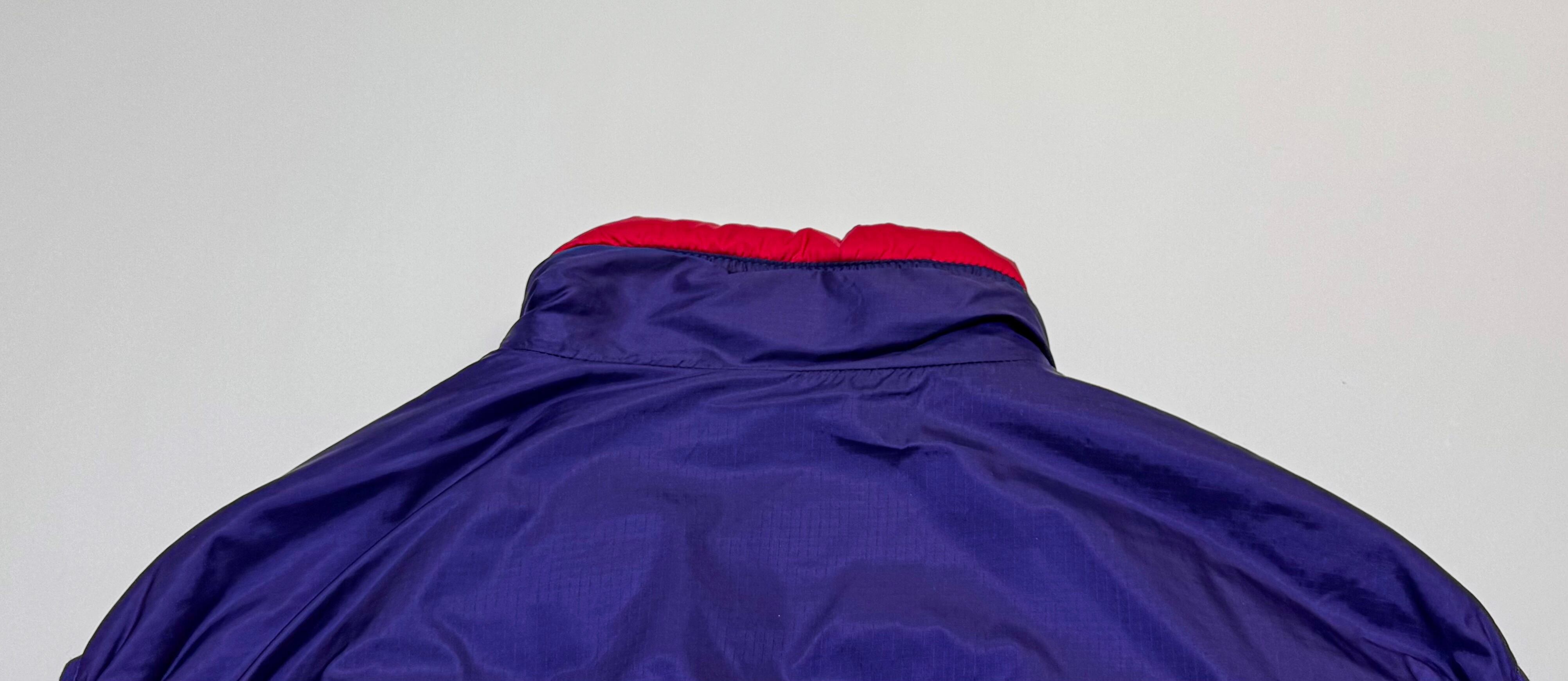 リップストップナイロンのシェルに、発色の良いパープルとレッドのコントラスト。