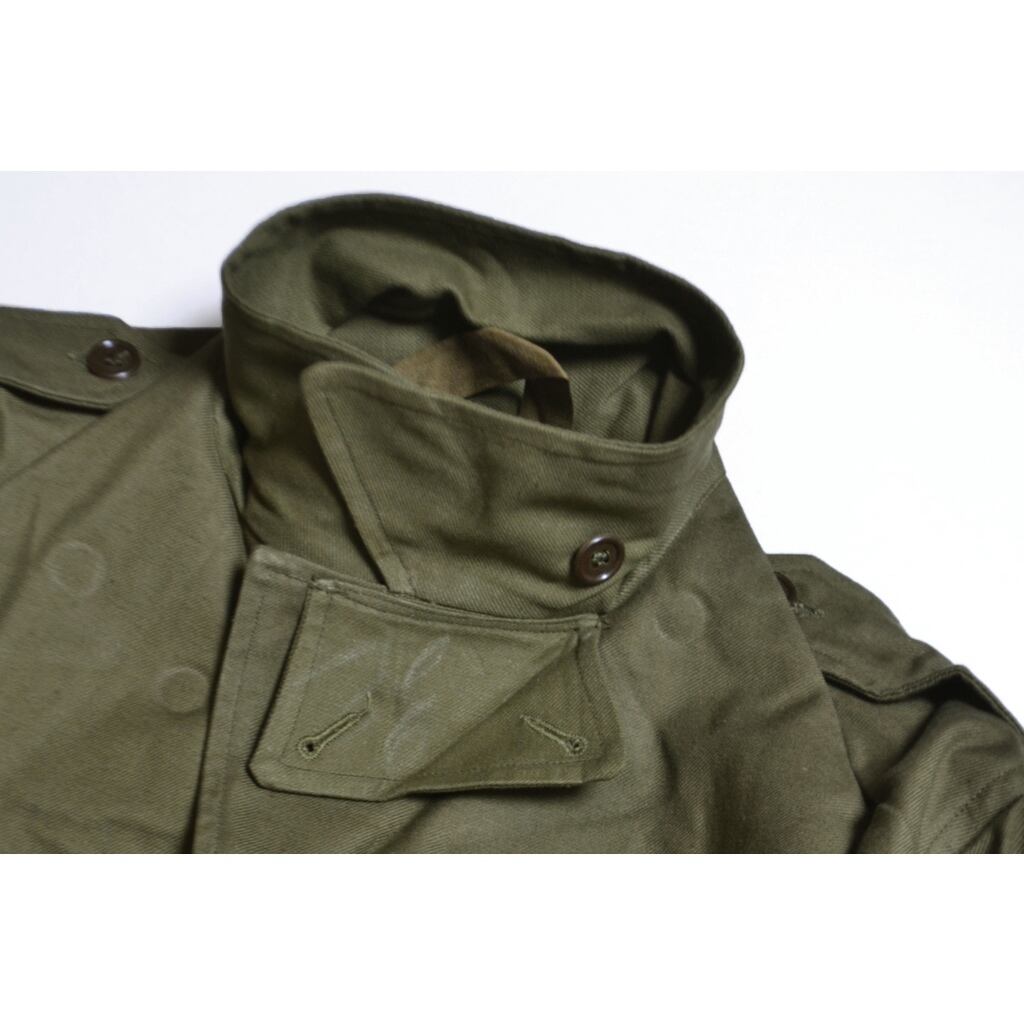 前期タイプはパンツ同様に、厚手のツイル生地。ブラウン混じりの独特なオリーブカラーです。