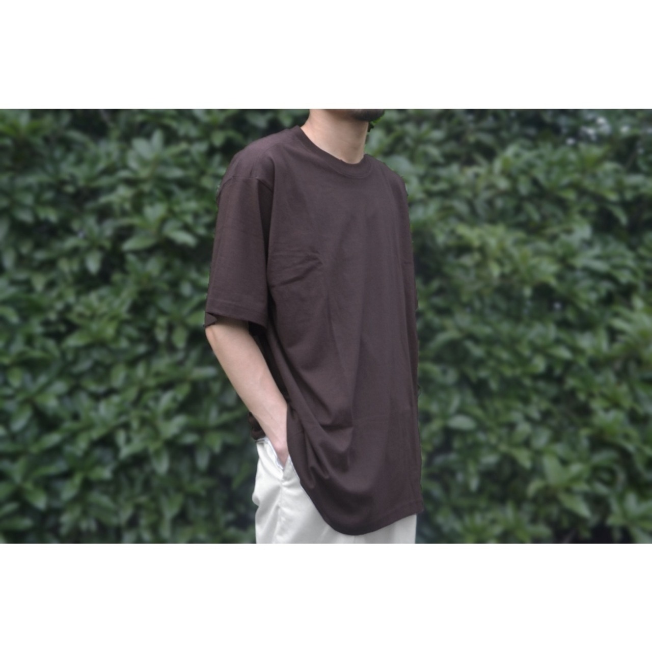夏場に最適なサラッとした生地感で、ダークトーンのブラウンカラーも汎用性が高く使い勝手も◎