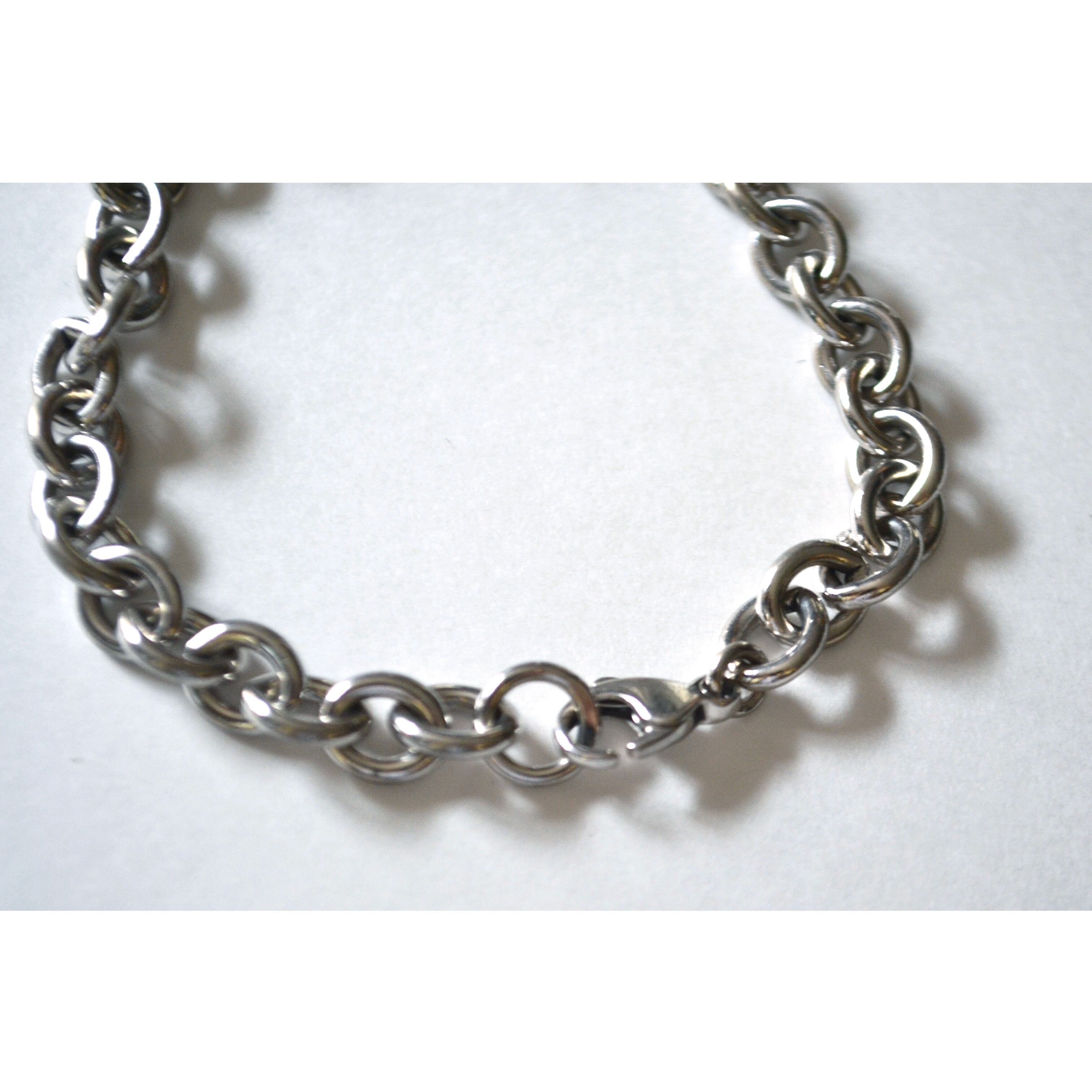 シンプルで存在感のあるやや大ぶりなシルバーブレスレット。