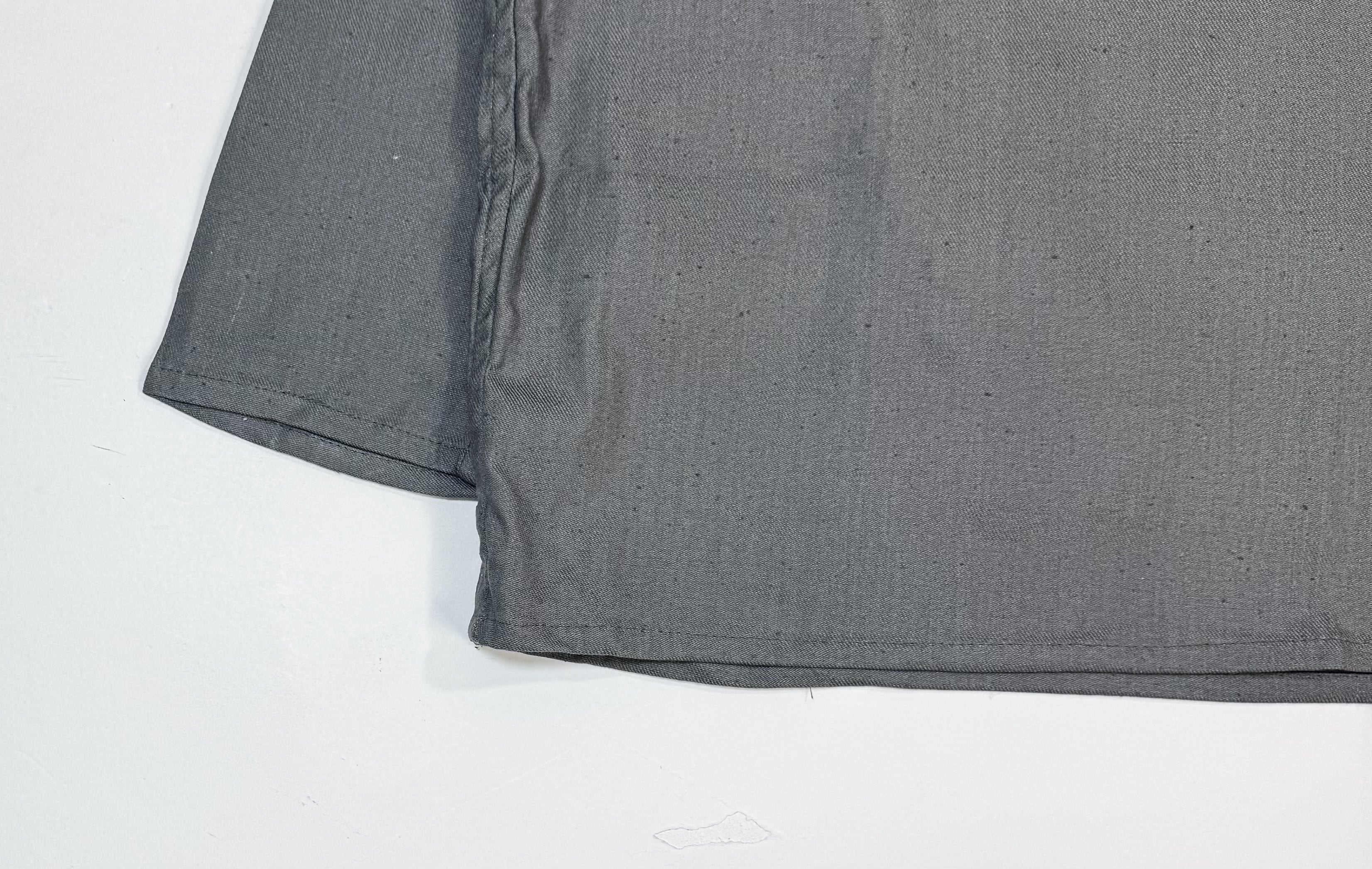 グレーのコットンを使用した一着で、どこか空気を含んだような軽さがあります。