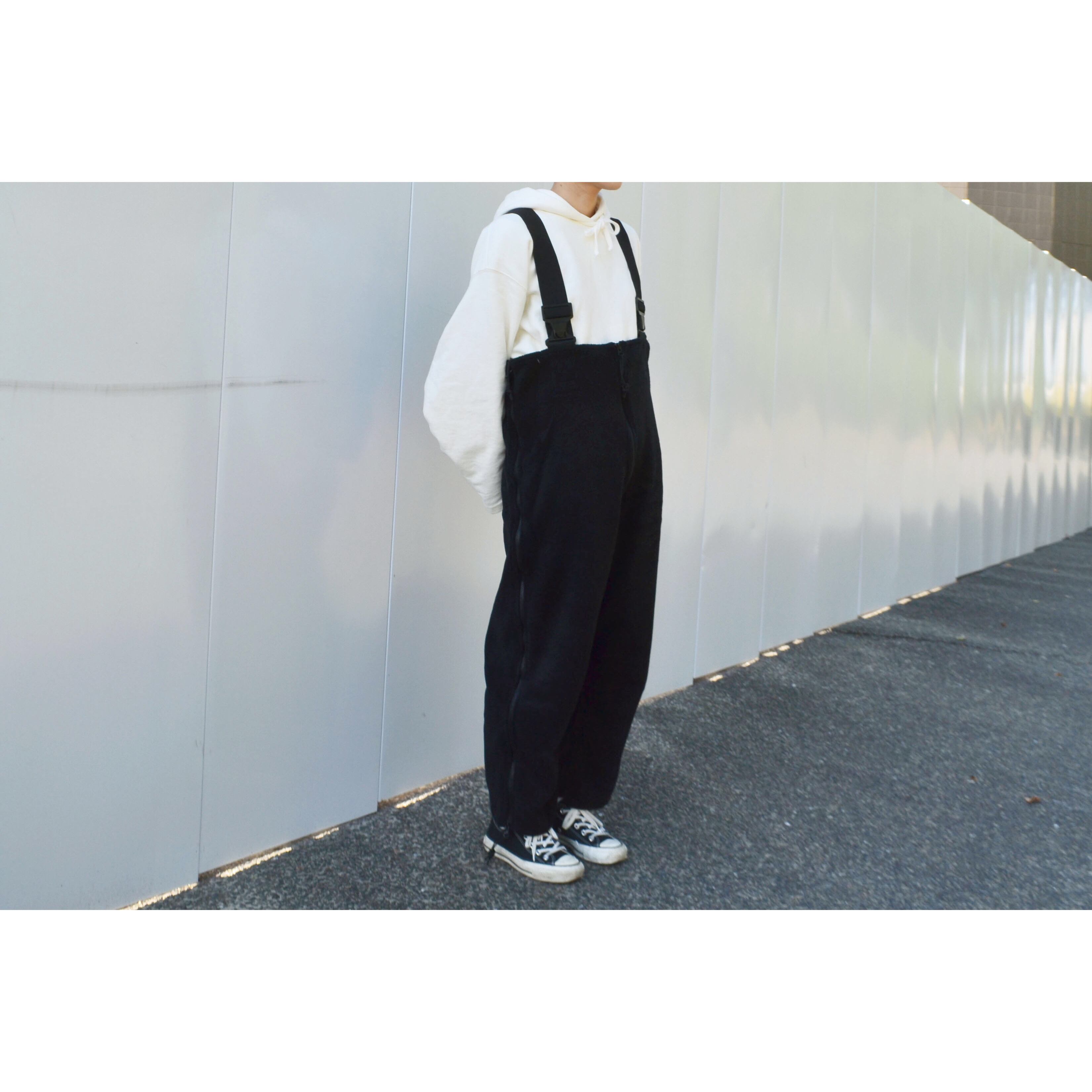 一般的なオーバーオールにある胸当てはなく、中央のジッパーが長く、股上が深めなのが特徴です。