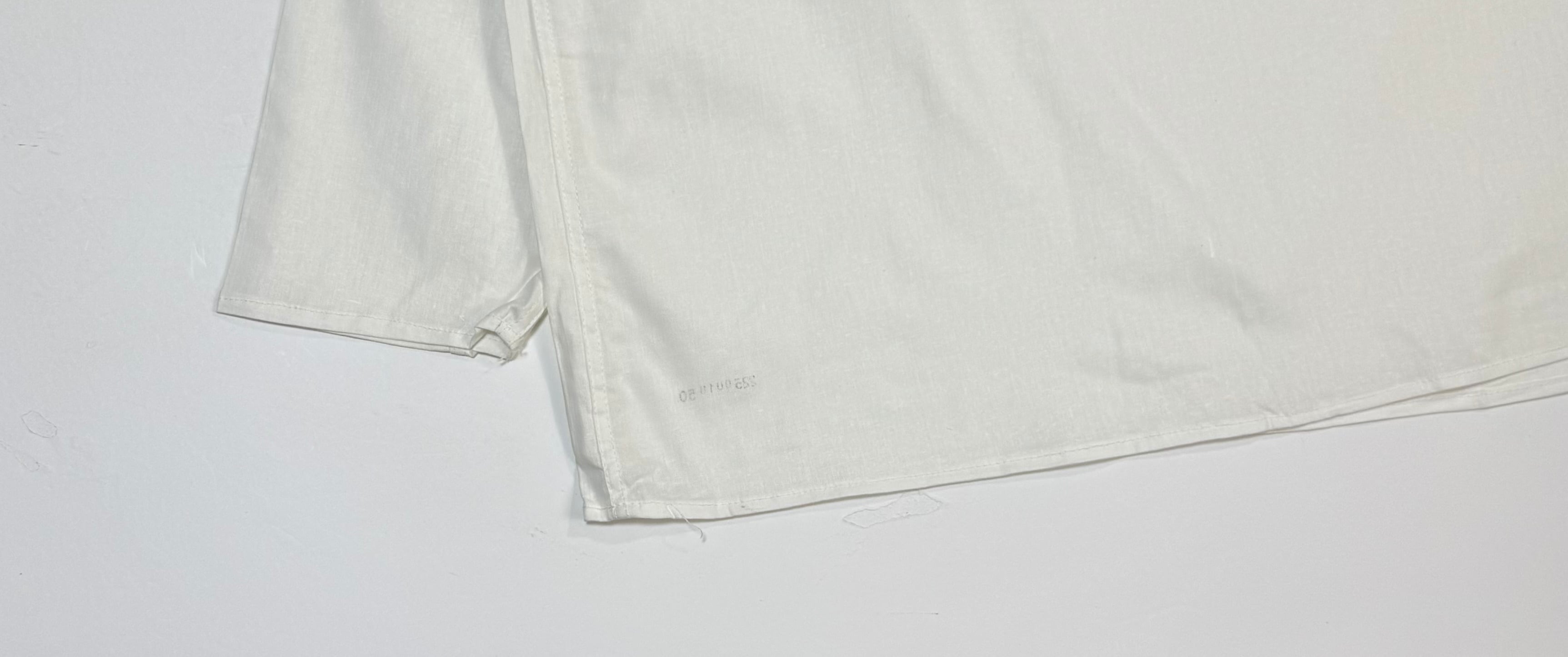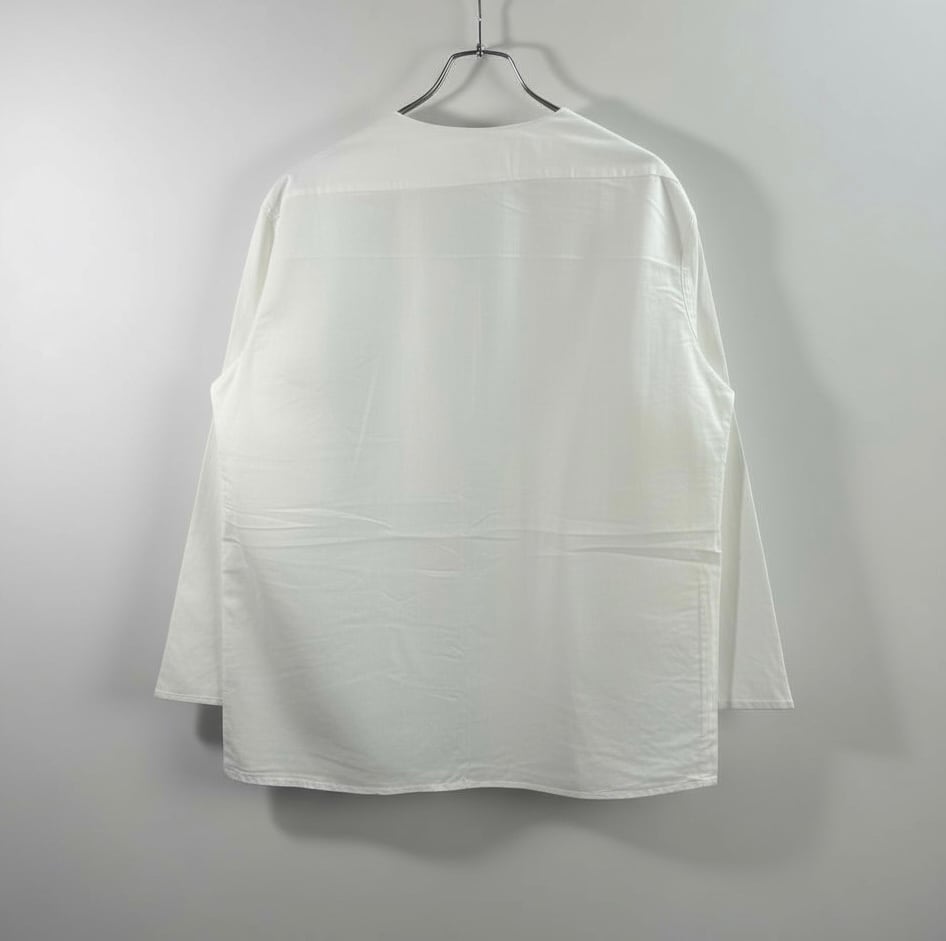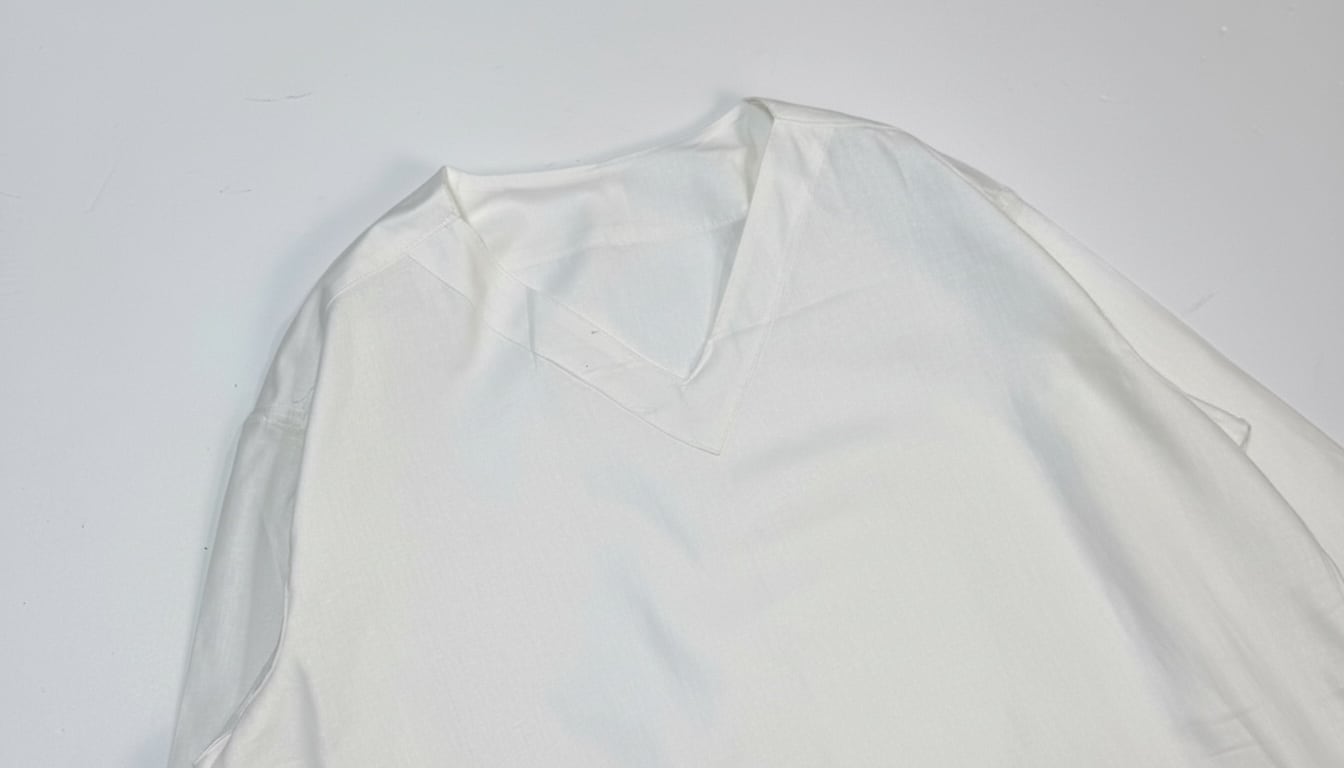 ホワイトのコットンを使用した、ボタンなしのVネック仕様の一着です。