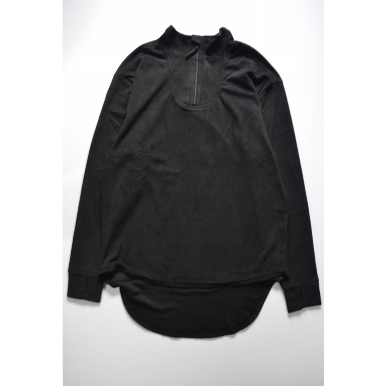 首元は高めのハーフジップで、カジュアルな中にも何処となく上品な印象を与えてくれます。