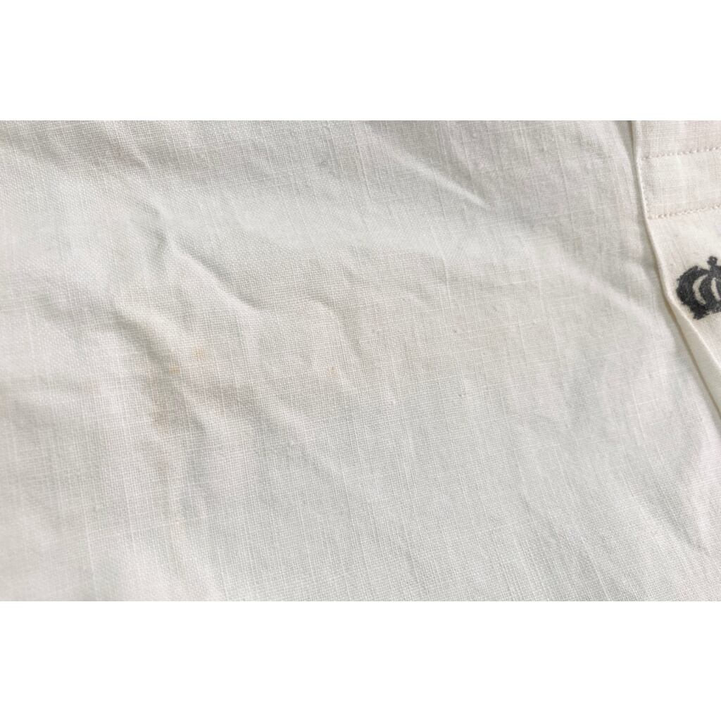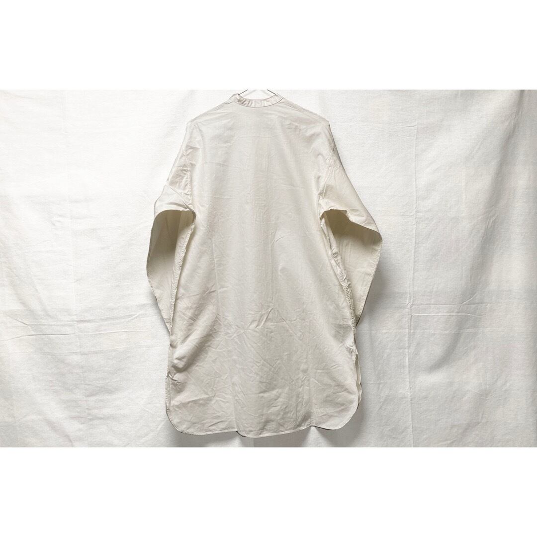 首元と、袖にはメタルボタンが使用されています。こちらはあるしっかりとしたコットン素材で、ホワイトカラー。
