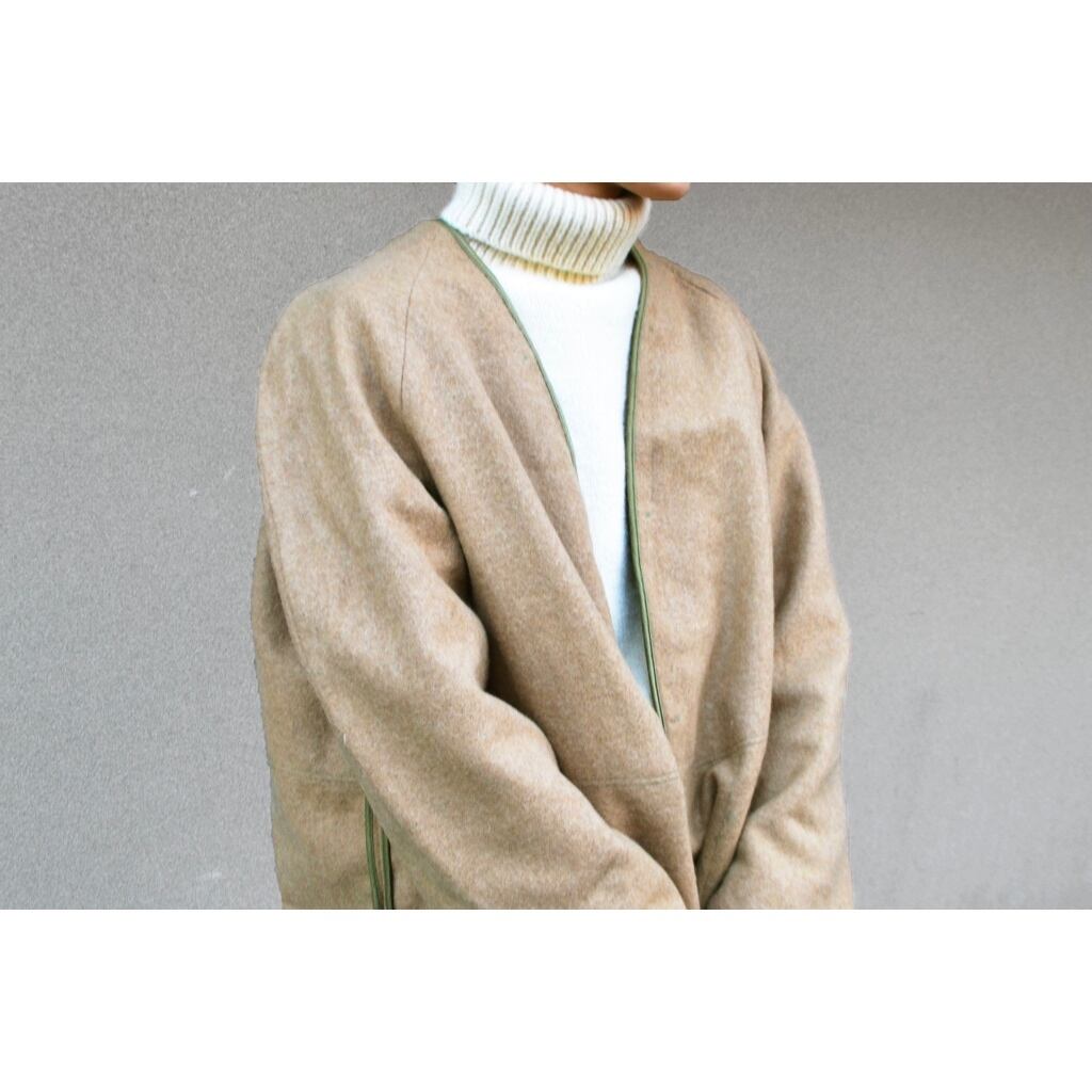 サテン地との組み合わせも面白いですね。ユニセックスで着用可能ですが、個人的には女性にざっくりと羽織っていただきたい1着です。
