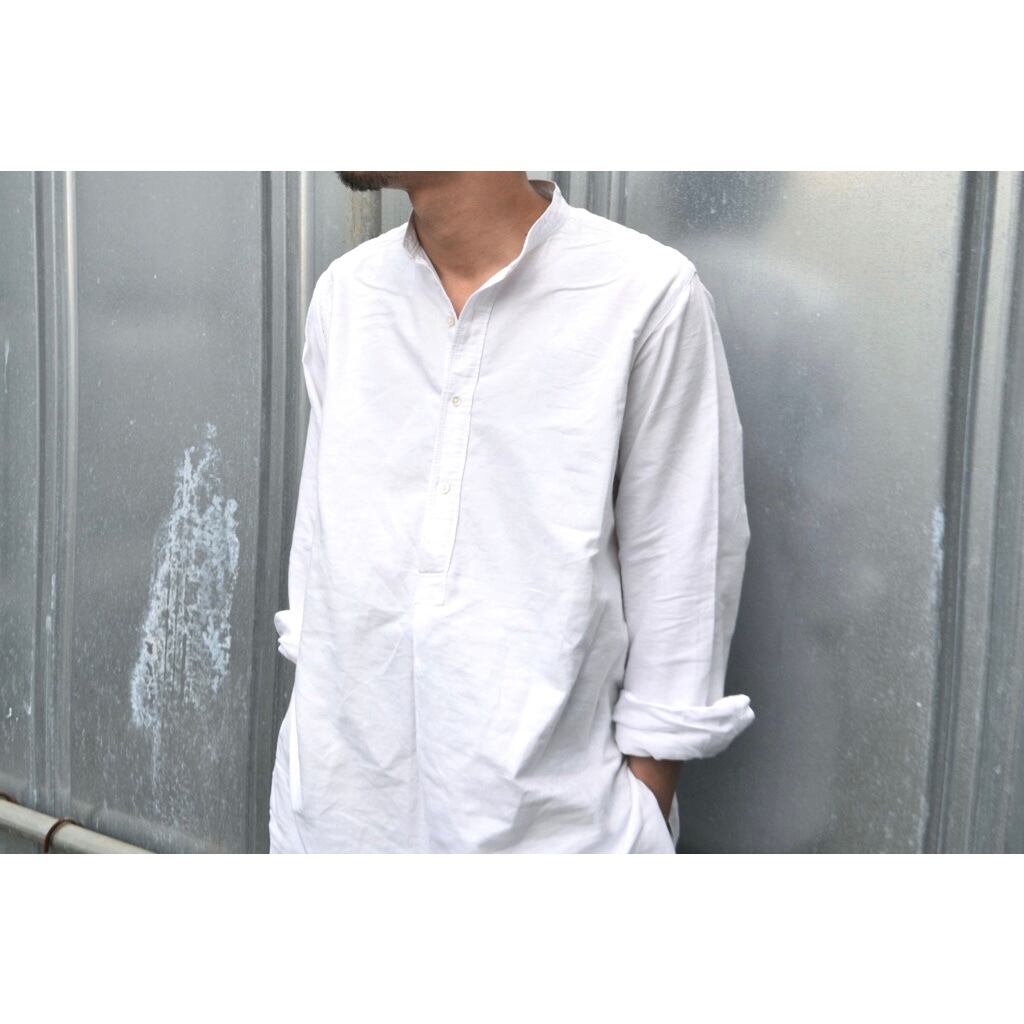 ノンカラーのプルオーバーでマチ付き袖はダブルカフス仕様です。