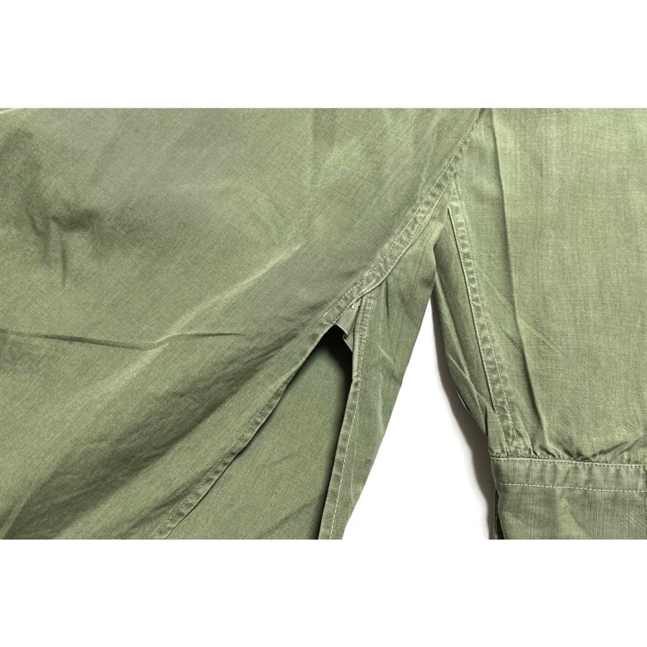 両肩のヨークに沿って細かな破れが数箇所、右肩には補修跡が見られます。