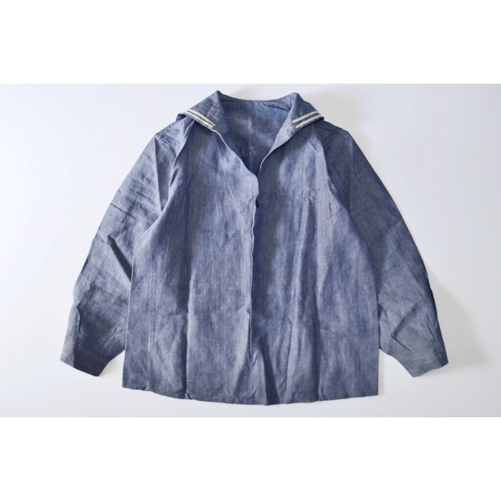 【Deadstock】 French Navy Linen Sailor Shirt / Size: C3